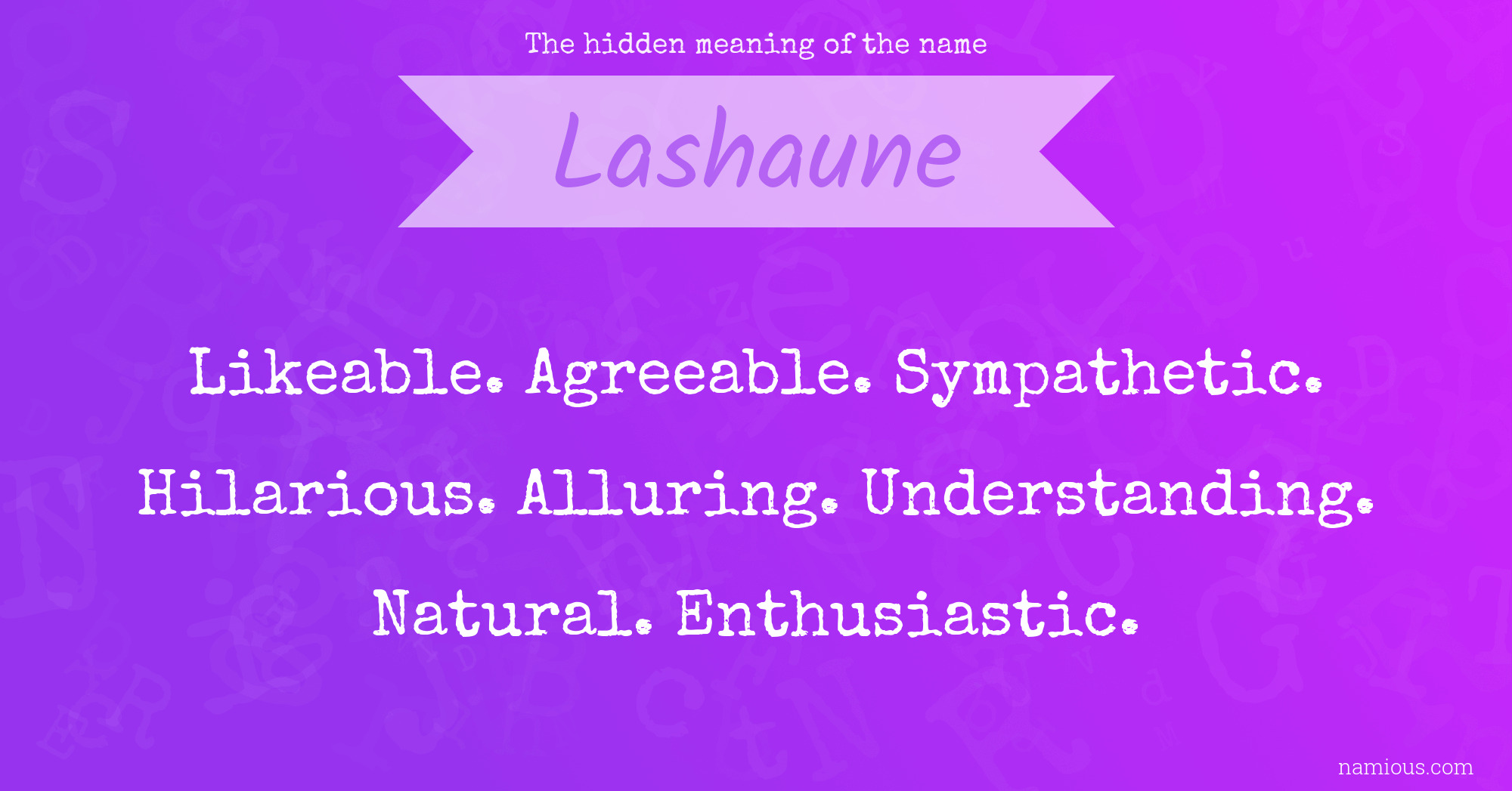 "Lashaune is a likeable, agreeable, sympathetic, hilarious, alluring, understanding, natural and enthusiastic person."