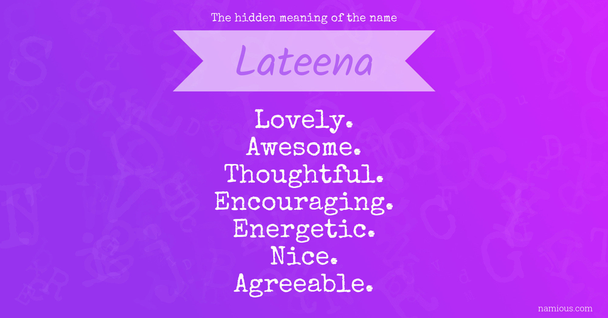 "Lateena is a lovely, awesome, thoughtful, encouraging, energetic, nice and agreeable person."
