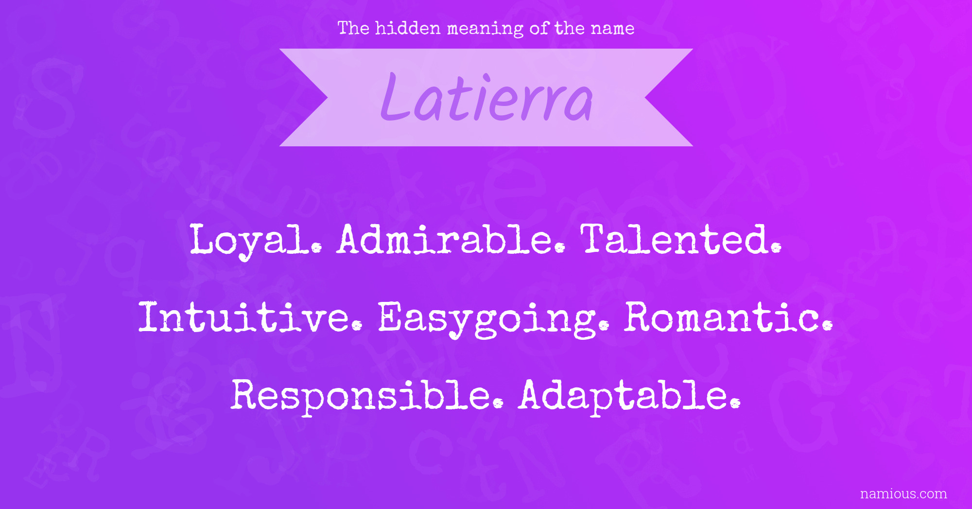 "Latierra is a loyal, admirable, talented, intuitive, easygoing, romantic, responsible and adaptable person."