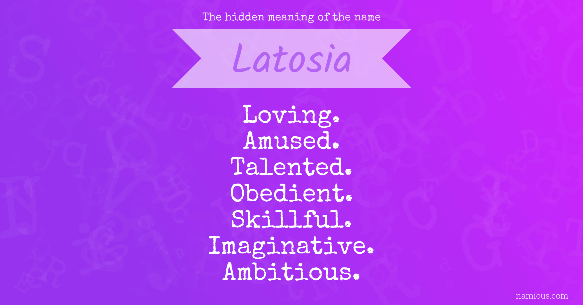 "Latosia is a loving, amused, talented, obedient, skillful, imaginative and ambitious person."