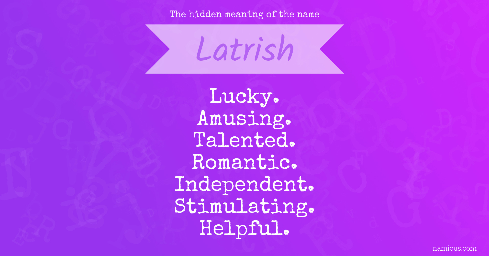 "Latrish is a lucky, amusing, talented, romantic, independent, stimulating and helpful person."