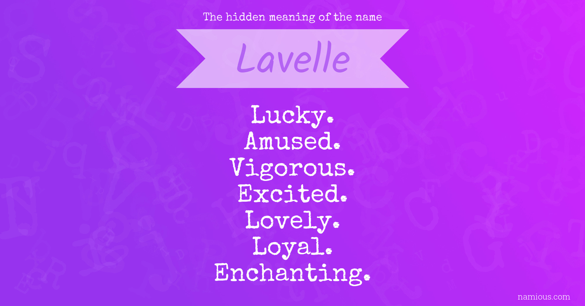 "Lavelle is a lucky, amused, vigorous, excited, lovely, loyal and enchanting person."