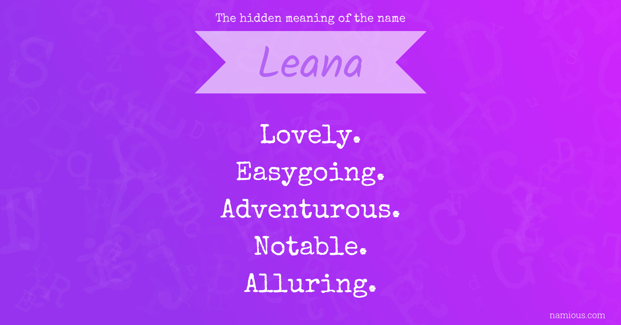 "Leana is a lovely, easygoing, adventurous, notable and alluring person."