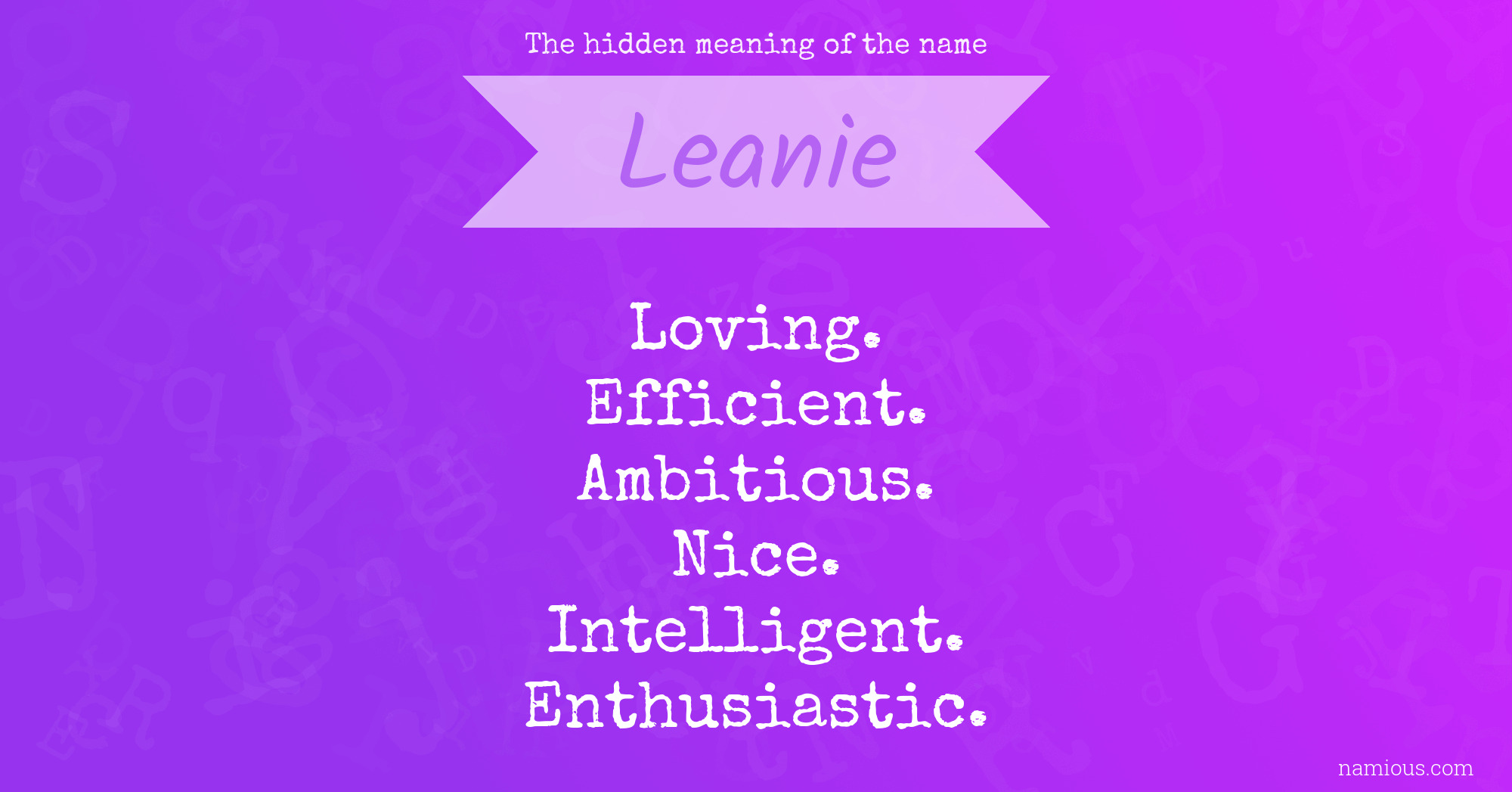 "Leanie is a loving, efficient, ambitious, nice, intelligent and enthusiastic person."