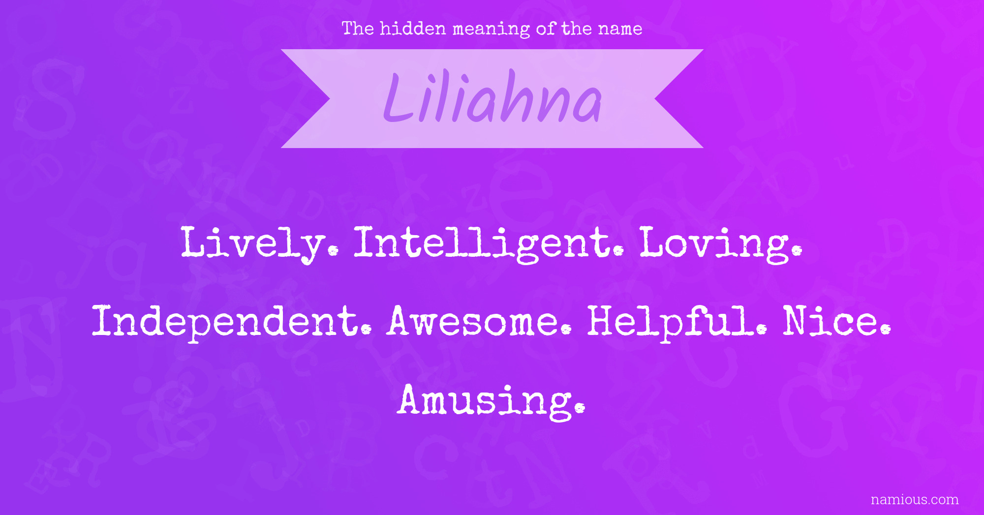 "Liliahna is a lively, intelligent, loving, independent, awesome, helpful, nice and amusing person."