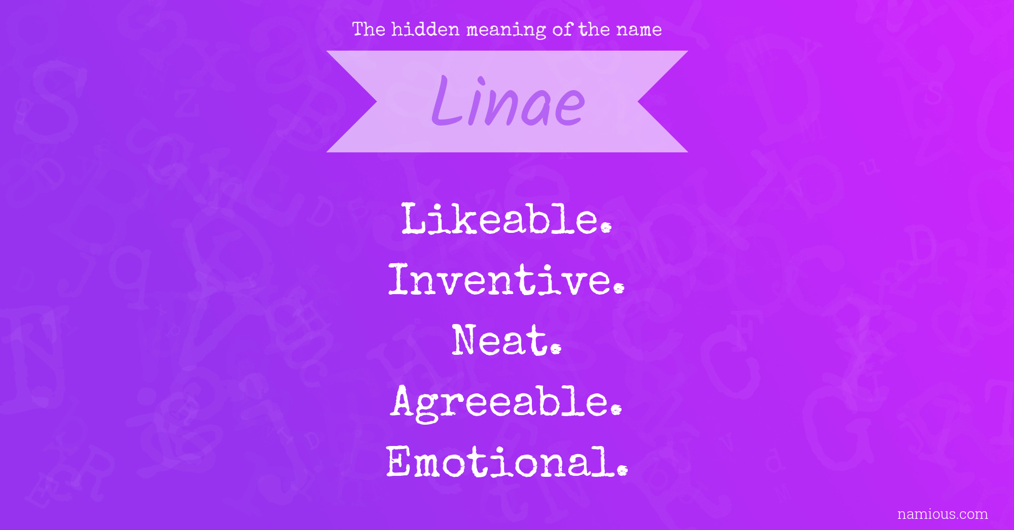 "Linae is a likeable, inventive, neat, agreeable and emotional person."