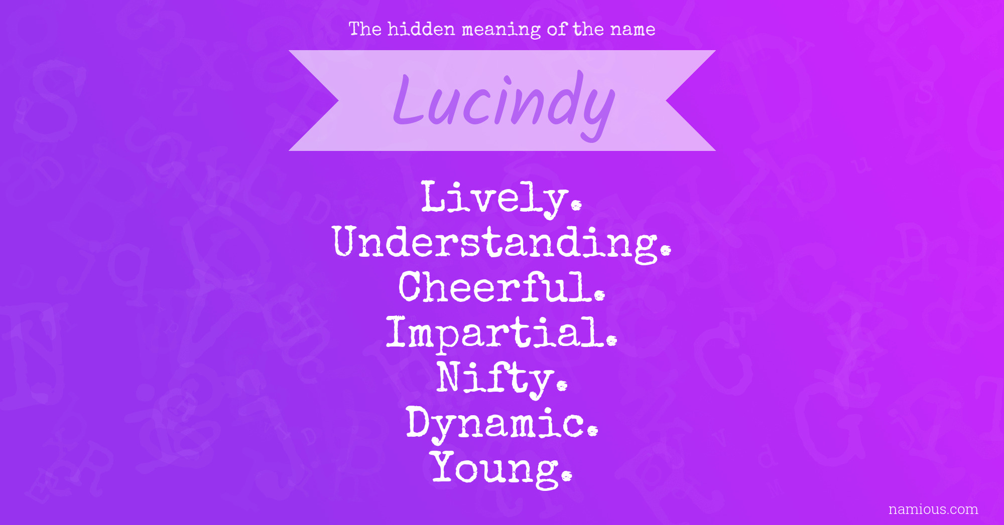 "Lucindy is a lively, understanding, cheerful, impartial, nifty, dynamic and young person."