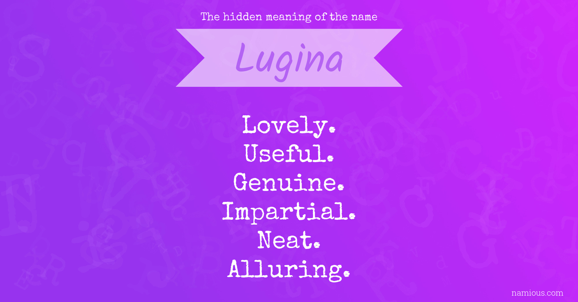 "Lugina is a lovely, useful, genuine, impartial, neat and alluring person."