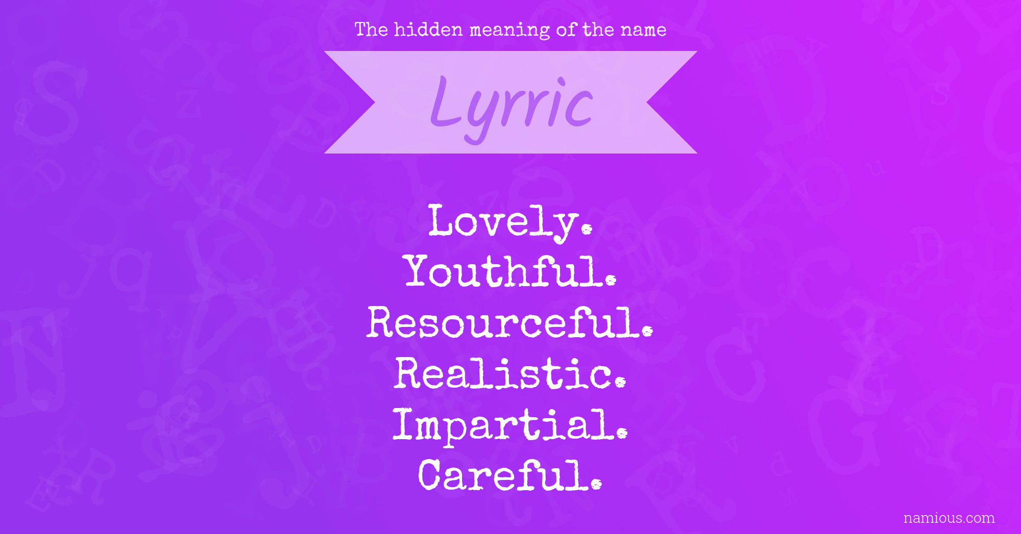 "Lyrric is a lovely, youthful, resourceful, realistic, impartial and careful person."