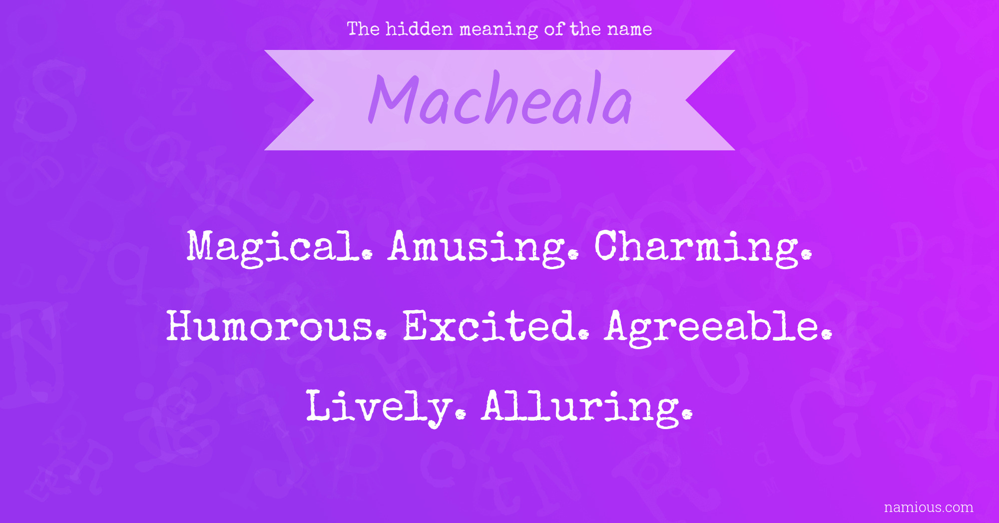 "Macheala is a magical, amusing, charming, humorous, excited, agreeable, lively and alluring person."