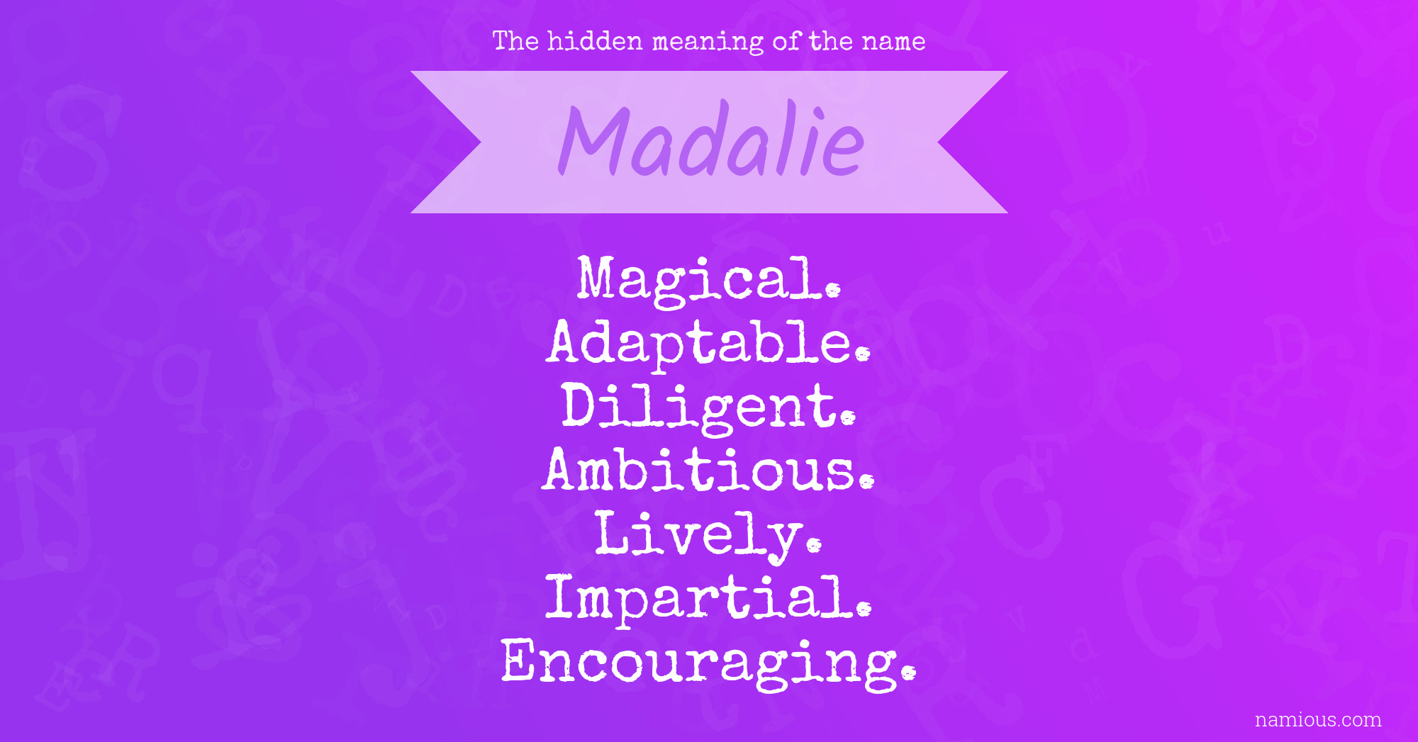 "Madalie is a magical, adaptable, diligent, ambitious, lively, impartial and encouraging person."