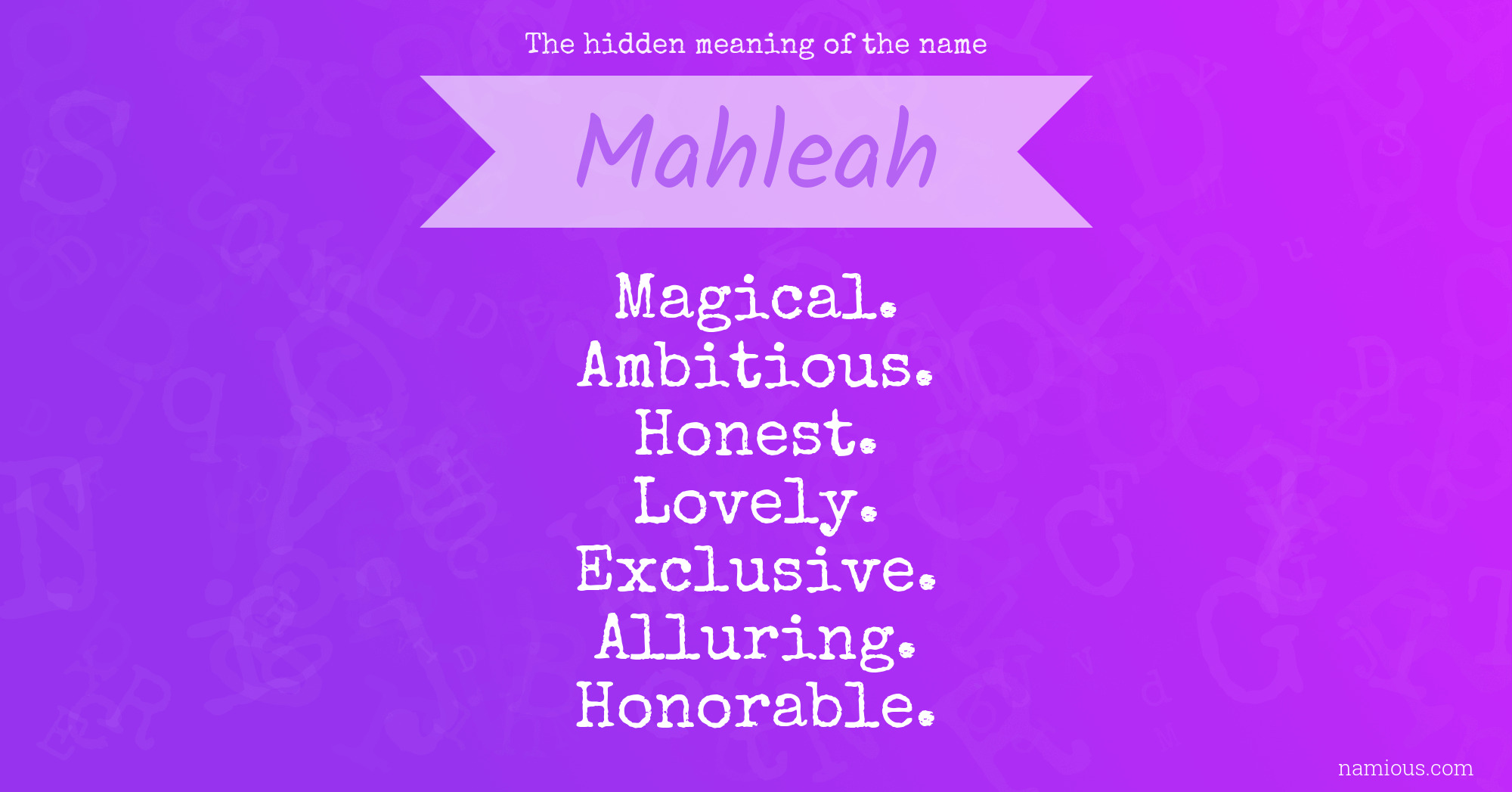 "Mahleah is a magical, ambitious, honest, lovely, exclusive, alluring and honorable person."