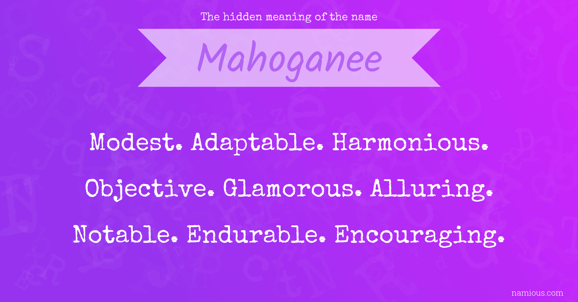 "Mahoganee is a modest, adaptable, harmonious, objective, glamorous, alluring, notable, endurable and encouraging person."