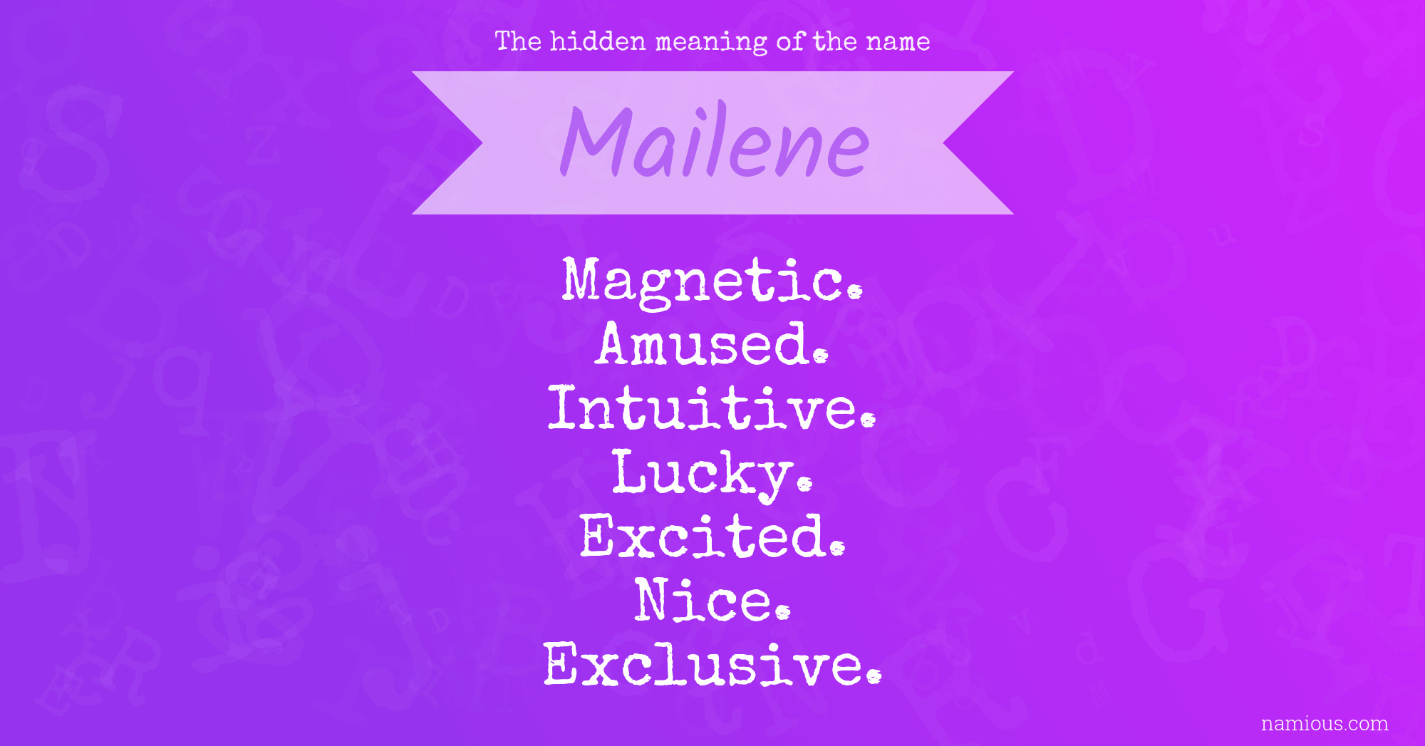 "Mailene is a magnetic, amused, intuitive, lucky, excited, nice and exclusive person."