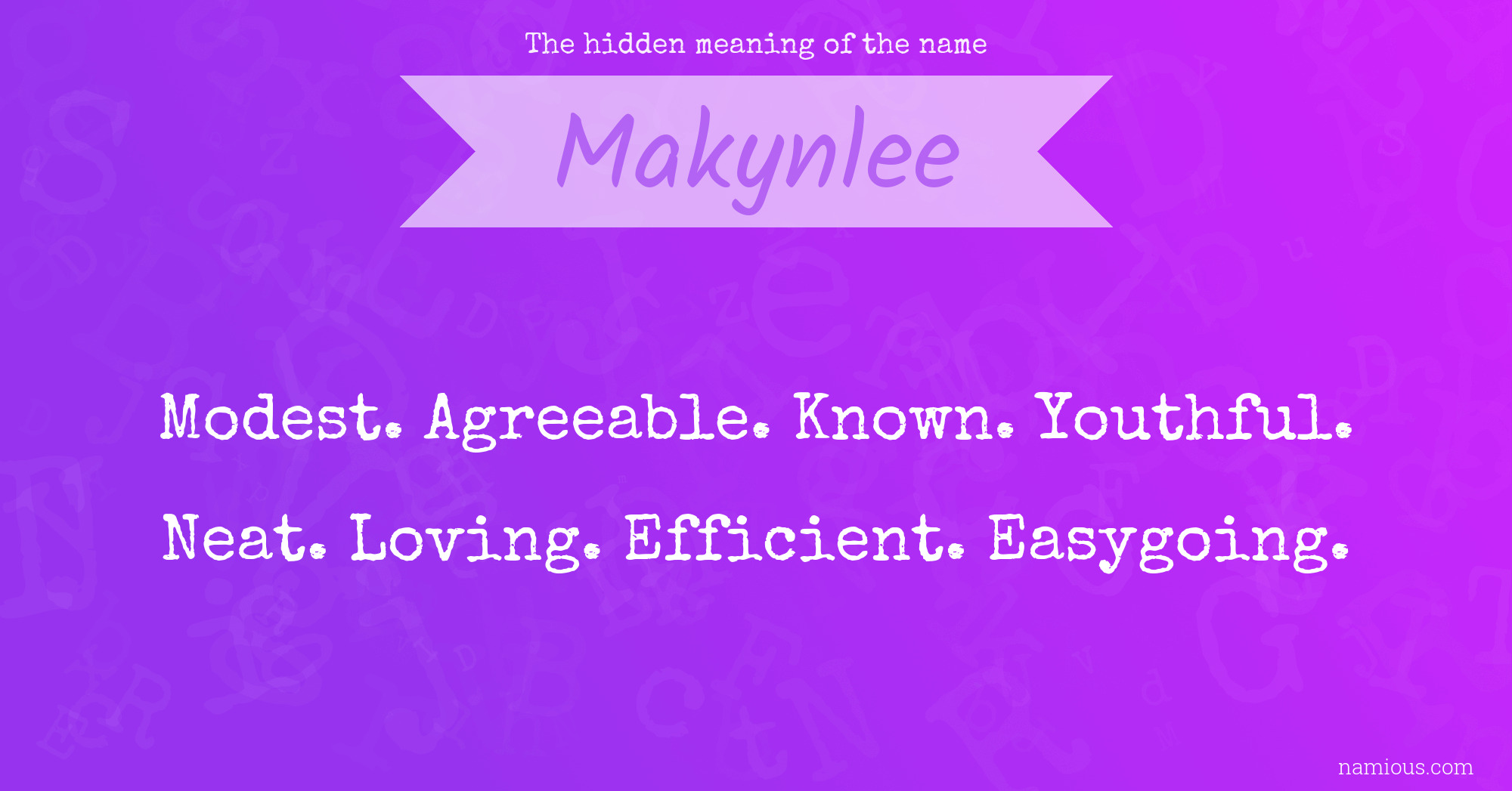 "Makynlee is a modest, agreeable, known, youthful, neat, loving, efficient and easygoing person."