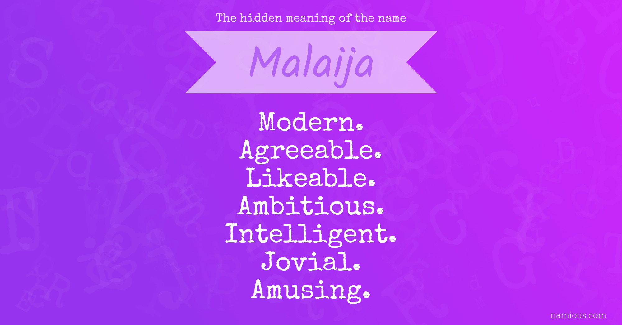 "Malaija is a modern, agreeable, likeable, ambitious, intelligent, jovial and amusing person."