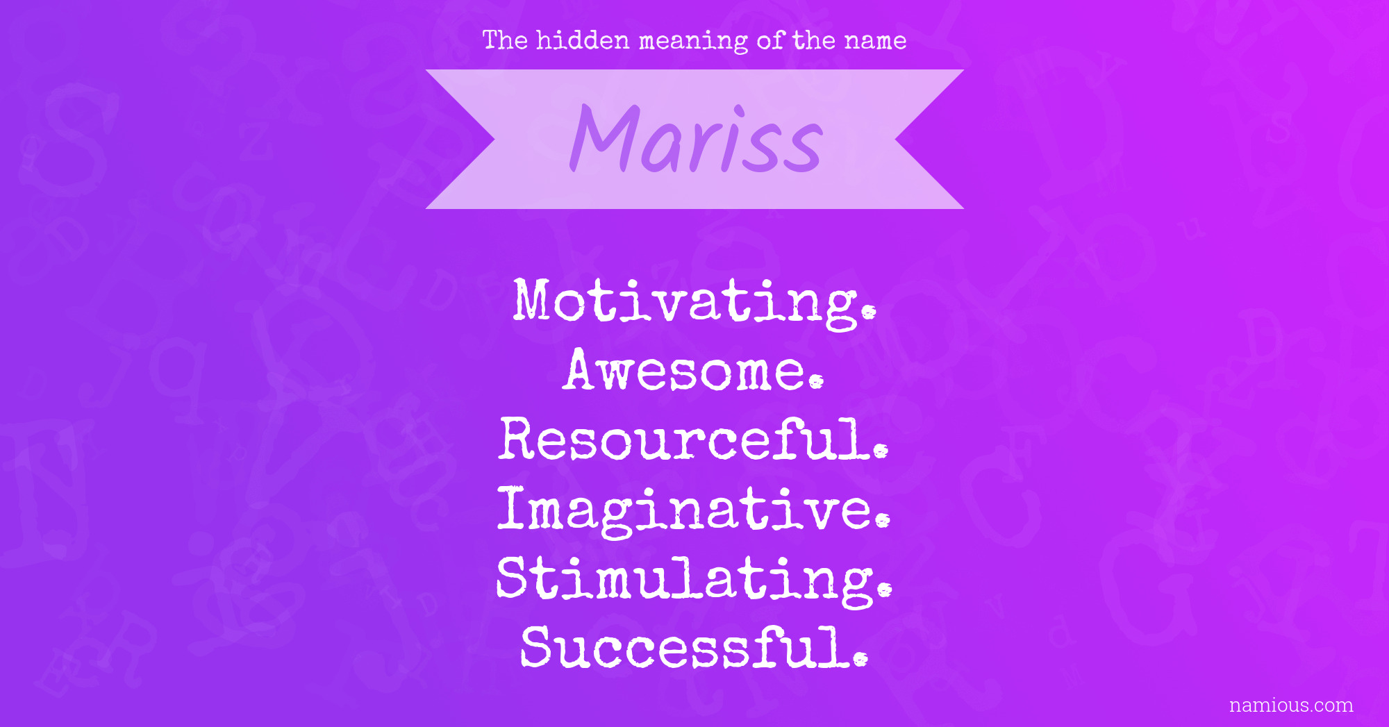 "Mariss is a motivating, awesome, resourceful, imaginative, stimulating and successful person."