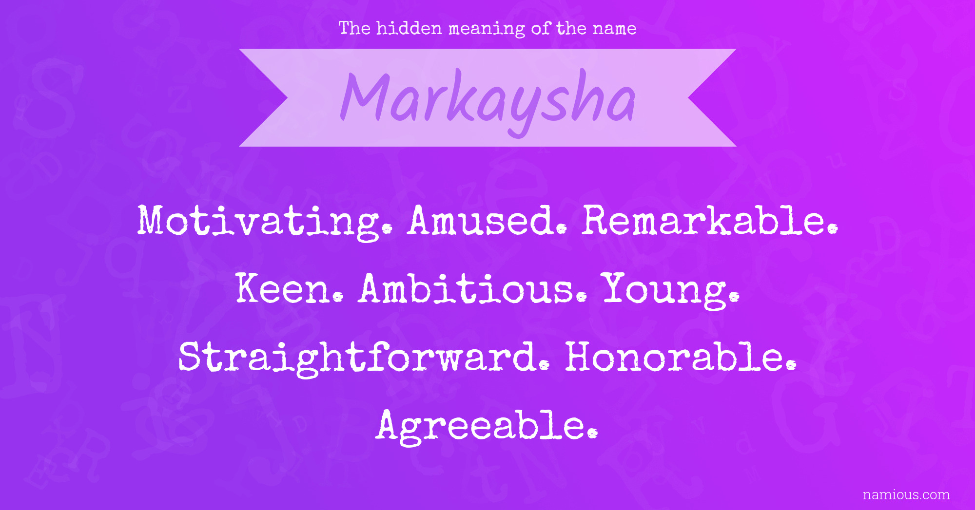 "Markaysha is a motivating, amused, remarkable, keen, ambitious, young, straightforward, honorable and agreeable person."