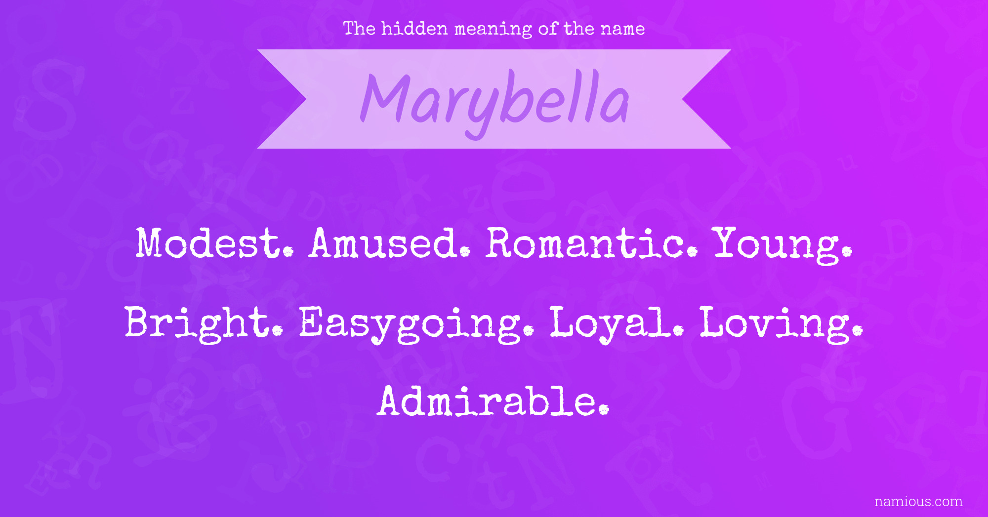 "Marybella is a modest, amused, romantic, young, bright, easygoing, loyal, loving and admirable person."
