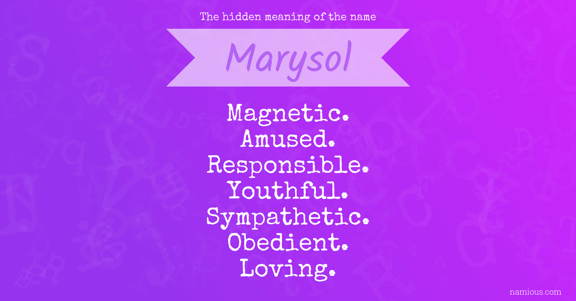 "Marysol is a magnetic, amused, responsible, youthful, sympathetic, obedient and loving person."