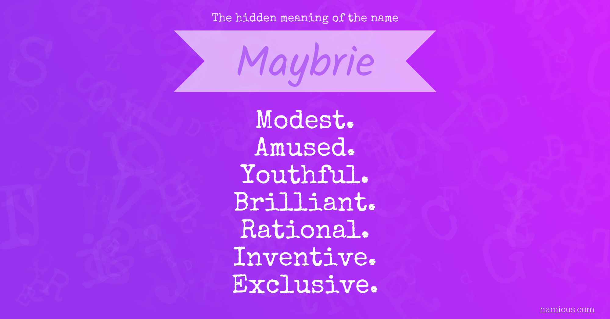 "Maybrie is a modest, amused, youthful, brilliant, rational, inventive and exclusive person."