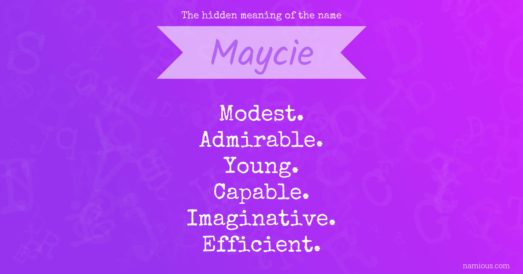 "Maycie is a modest, admirable, young, capable, imaginative and efficient person."