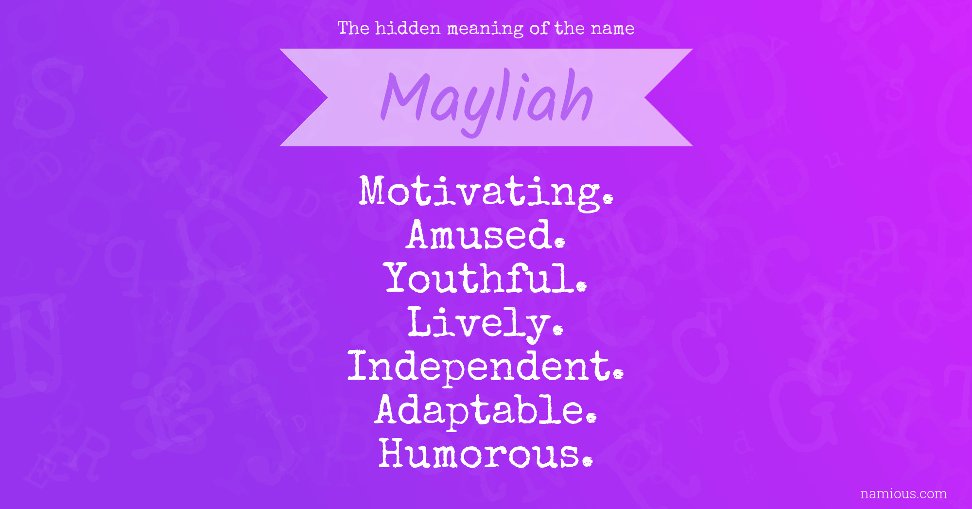 "Mayliah is a motivating, amused, youthful, lively, independent, adaptable and humorous person."