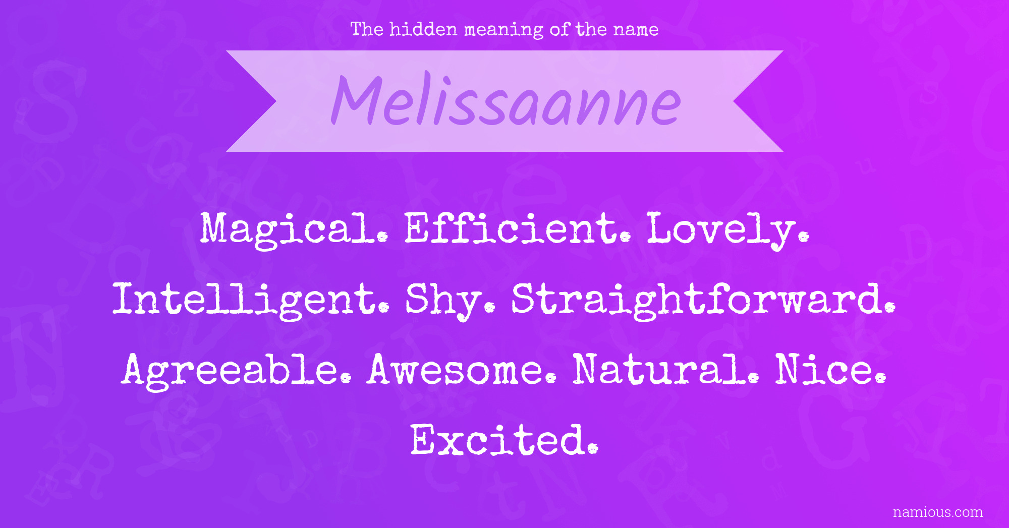 "Melissaanne is a magical, efficient, lovely, intelligent, shy, straightforward, agreeable, awesome, natural, nice and excited person."