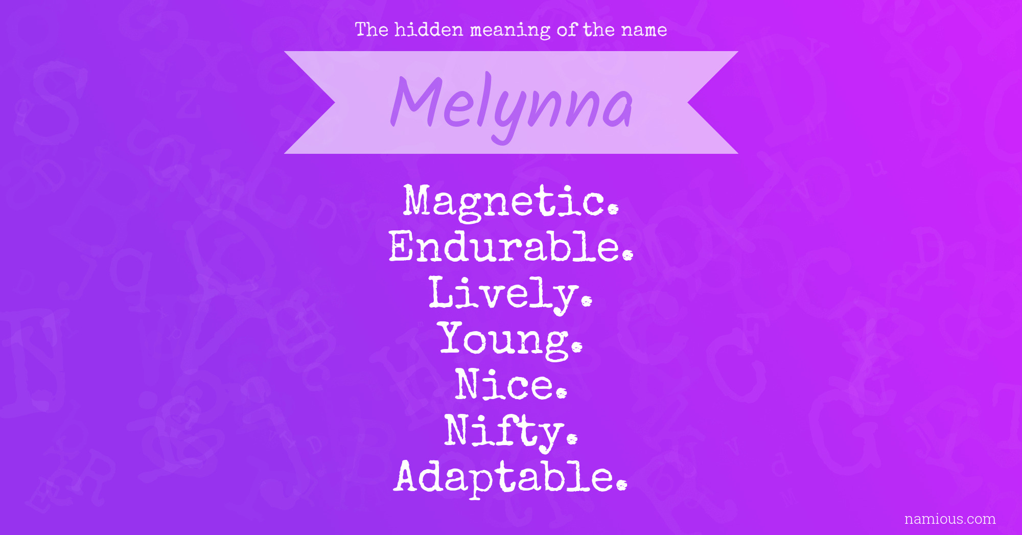 "Melynna is a magnetic, endurable, lively, young, nice, nifty and adaptable person."