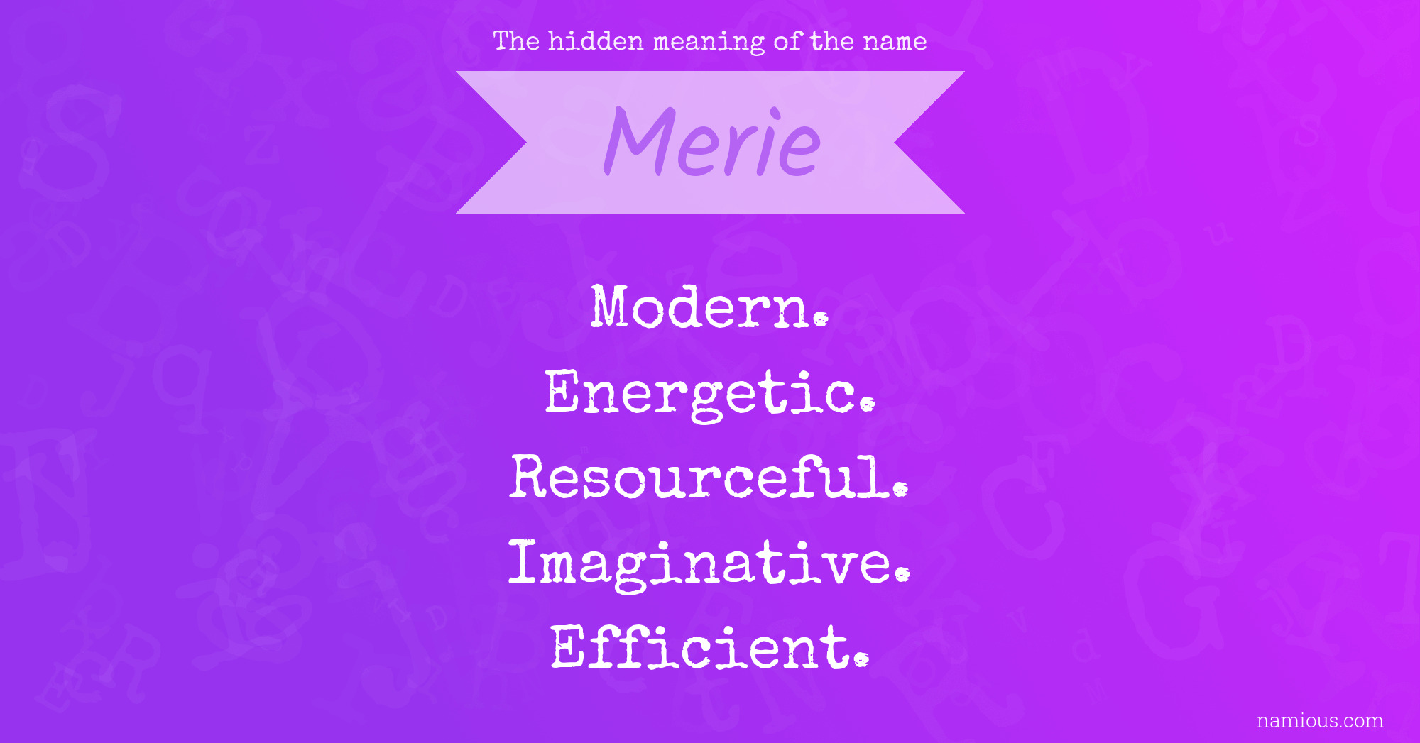 "Merie is a modern, energetic, resourceful, imaginative and efficient person."