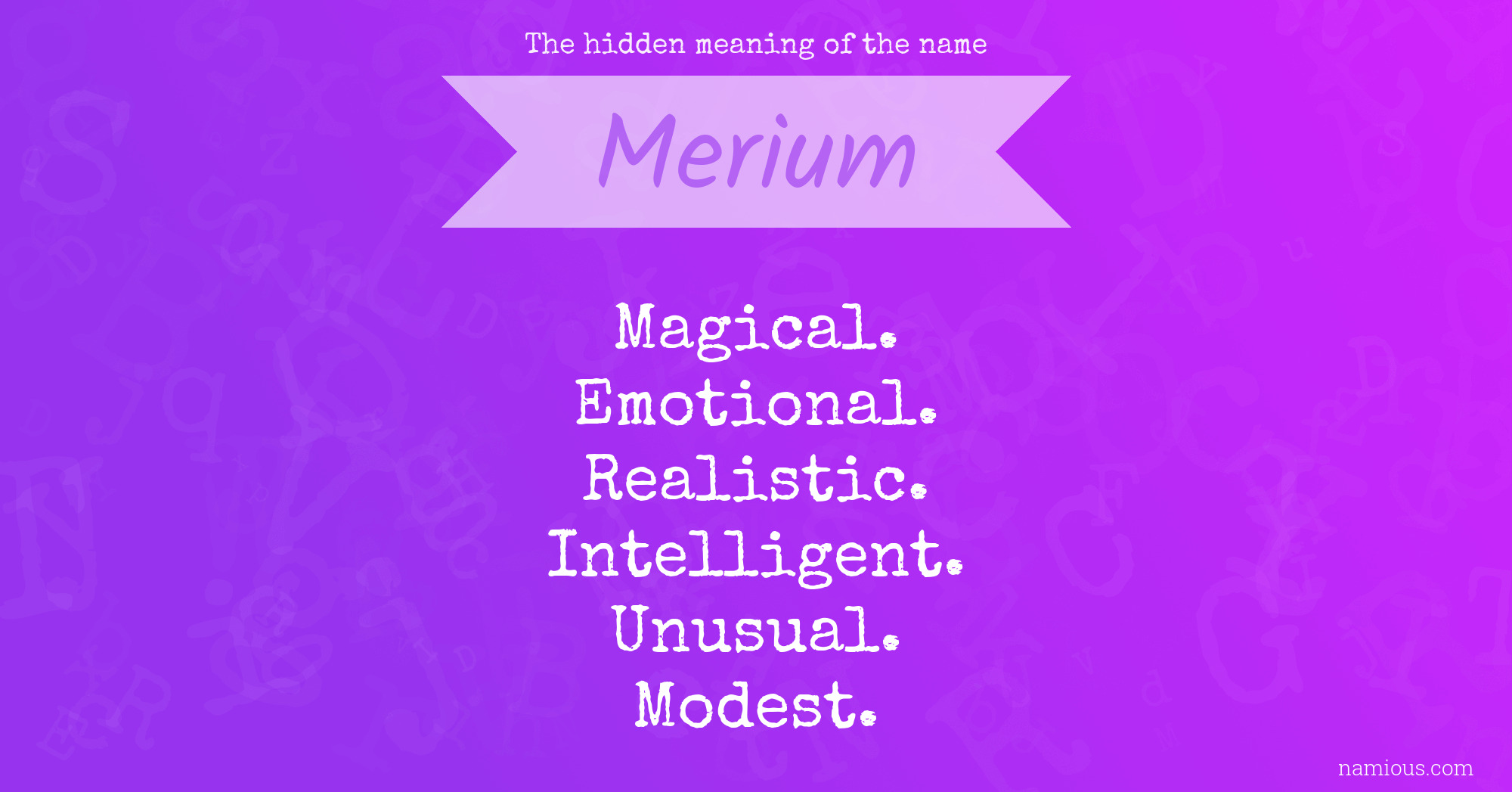 "Merium is a magical, emotional, realistic, intelligent, unusual and modest person."