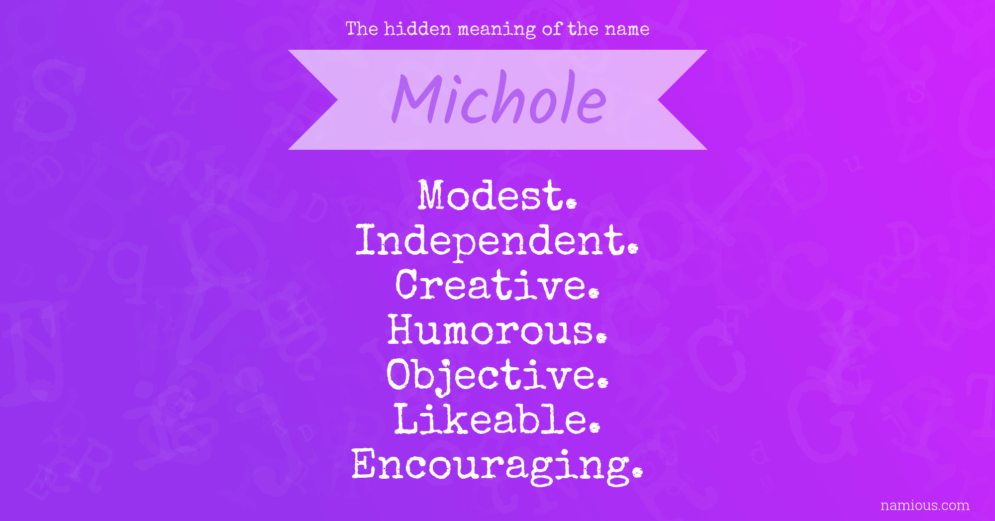 "Michole is a modest, independent, creative, humorous, objective, likeable and encouraging person."