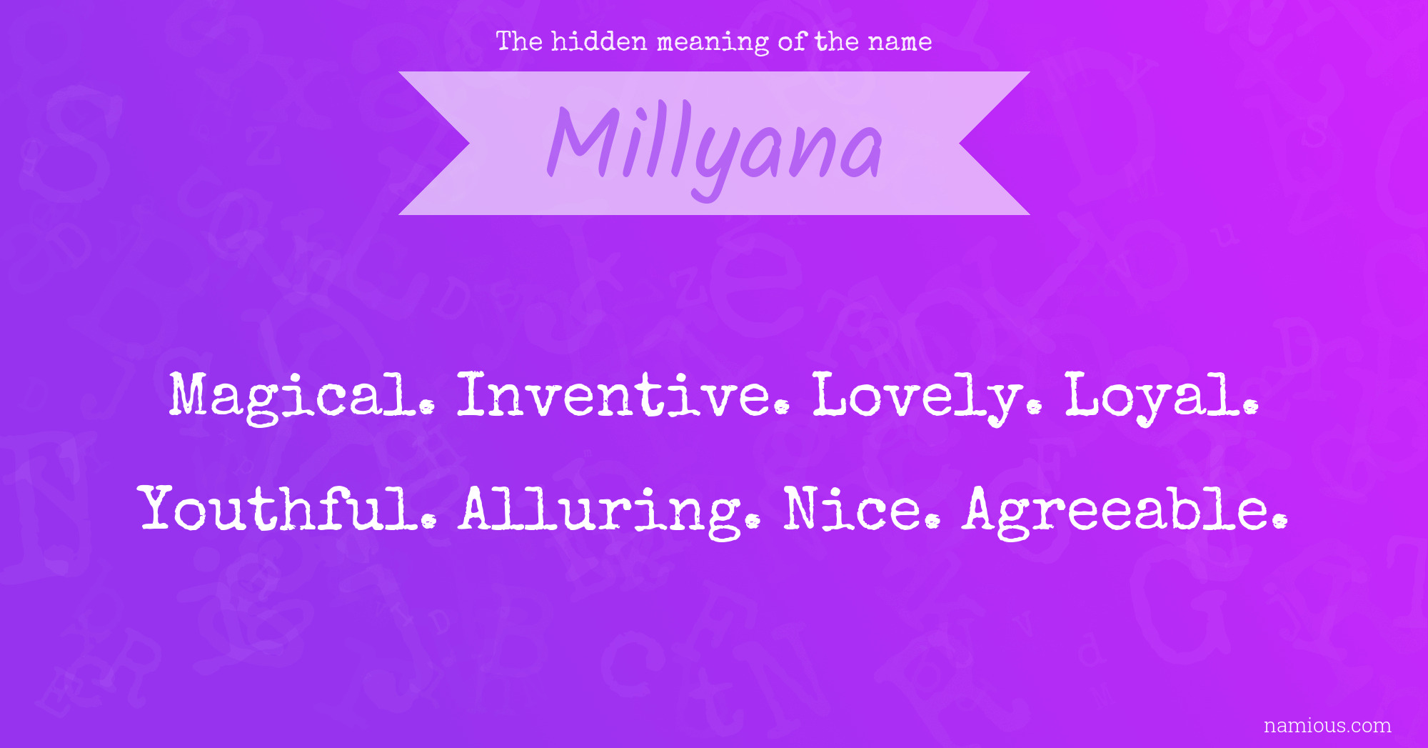 "Millyana is a magical, inventive, lovely, loyal, youthful, alluring, nice and agreeable person."