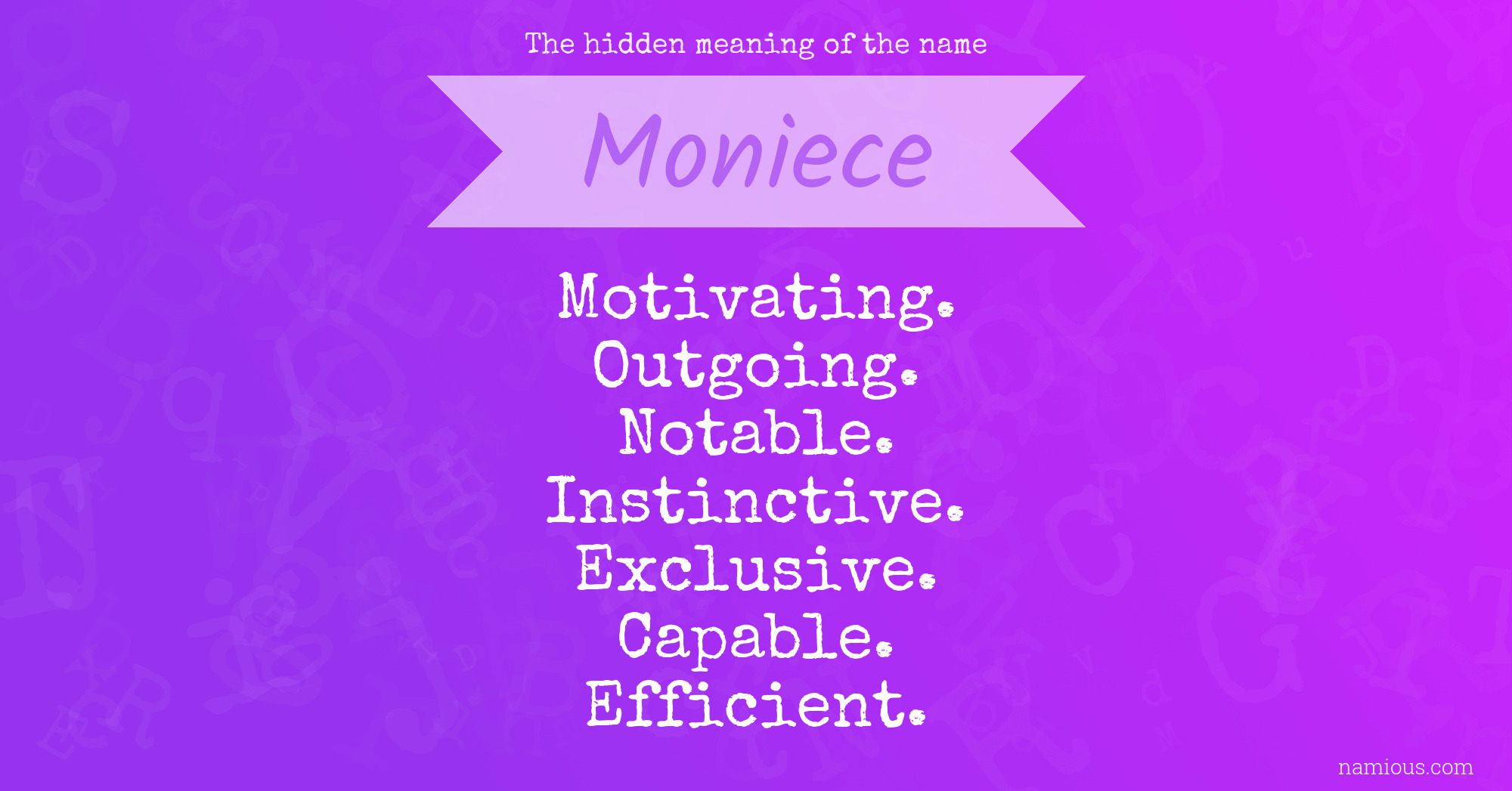 "Moniece is a motivating, outgoing, notable, instinctive, exclusive, capable and efficient person."