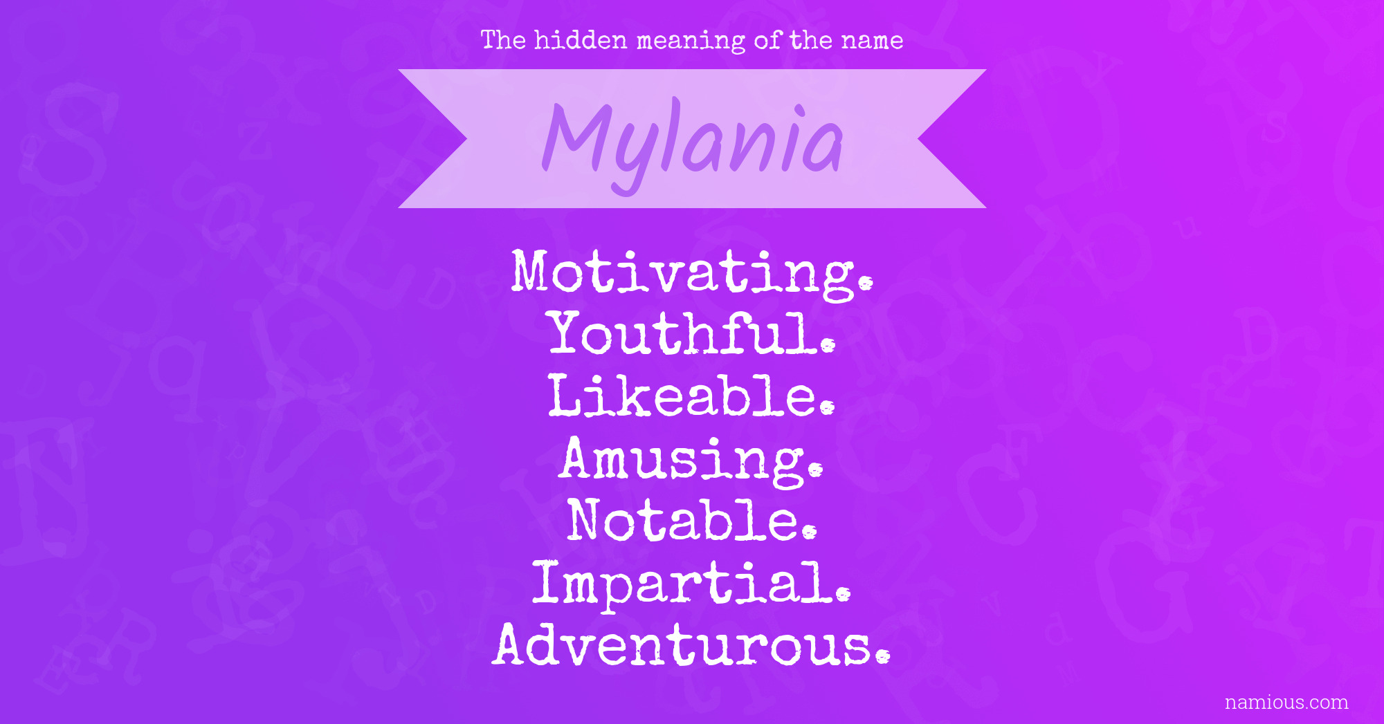 "Mylania is a motivating, youthful, likeable, amusing, notable, impartial and adventurous person."