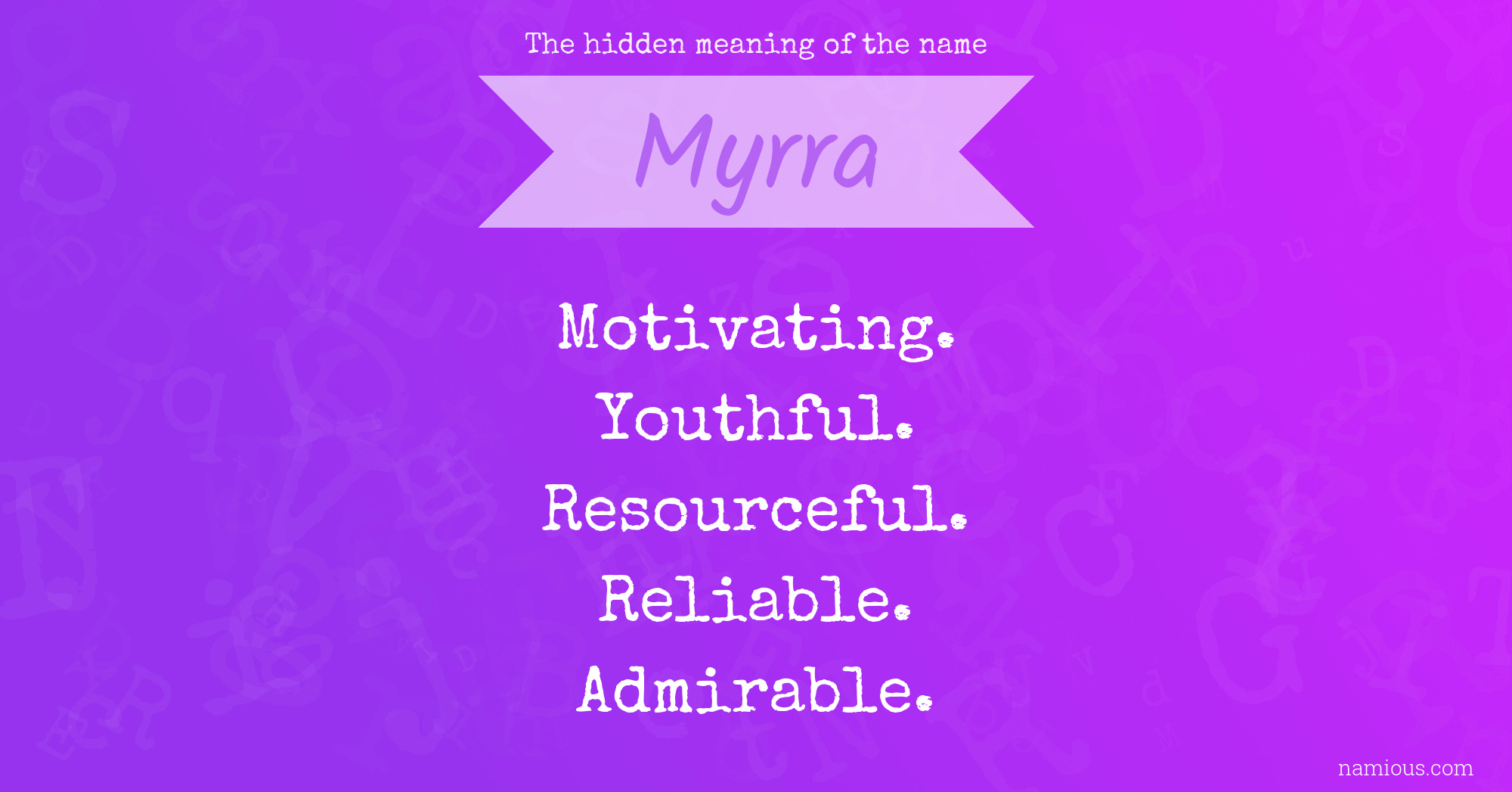 "Myrra is a motivating, youthful, resourceful, reliable and admirable person."