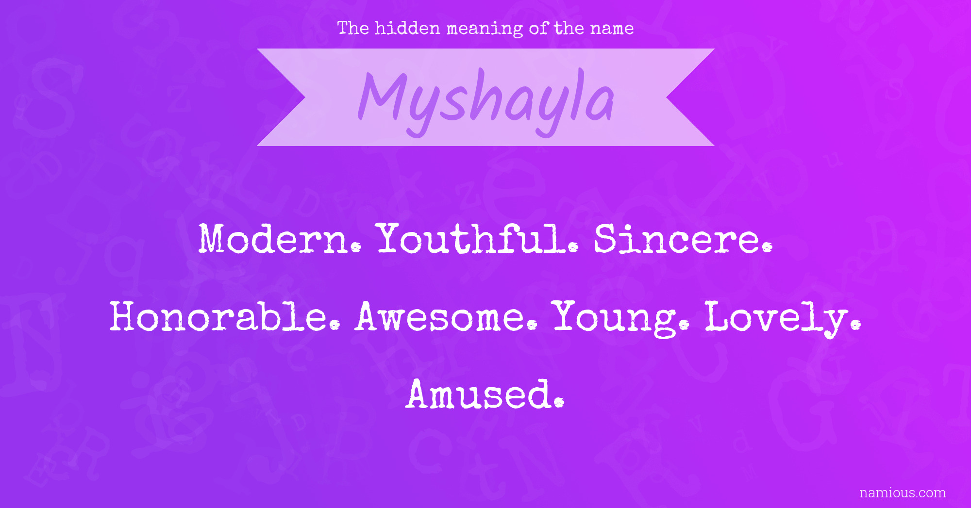 "Myshayla is a modern, youthful, sincere, honorable, awesome, young, lovely and amused person."