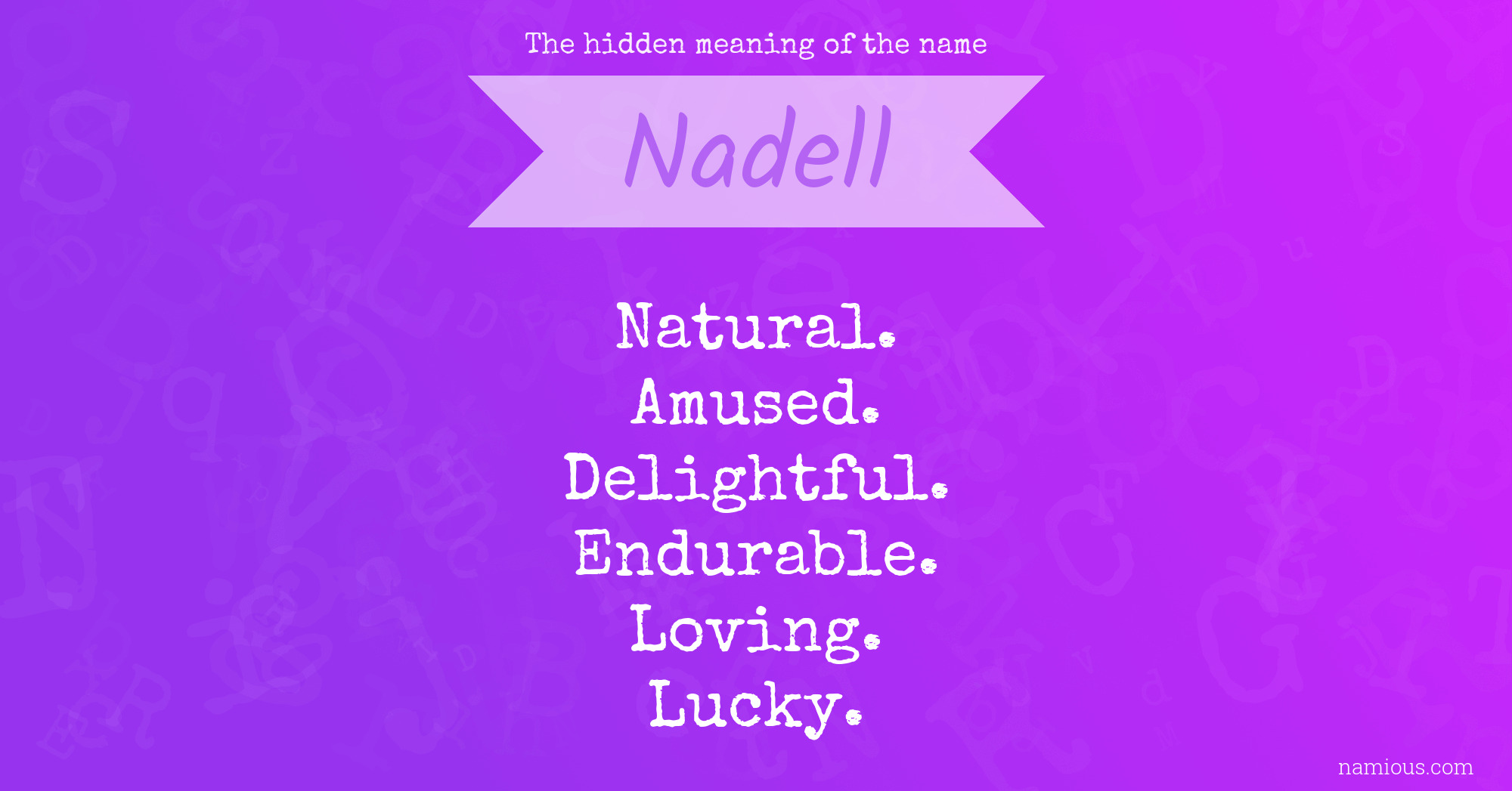 "Nadell is a natural, amused, delightful, endurable, loving and lucky person."