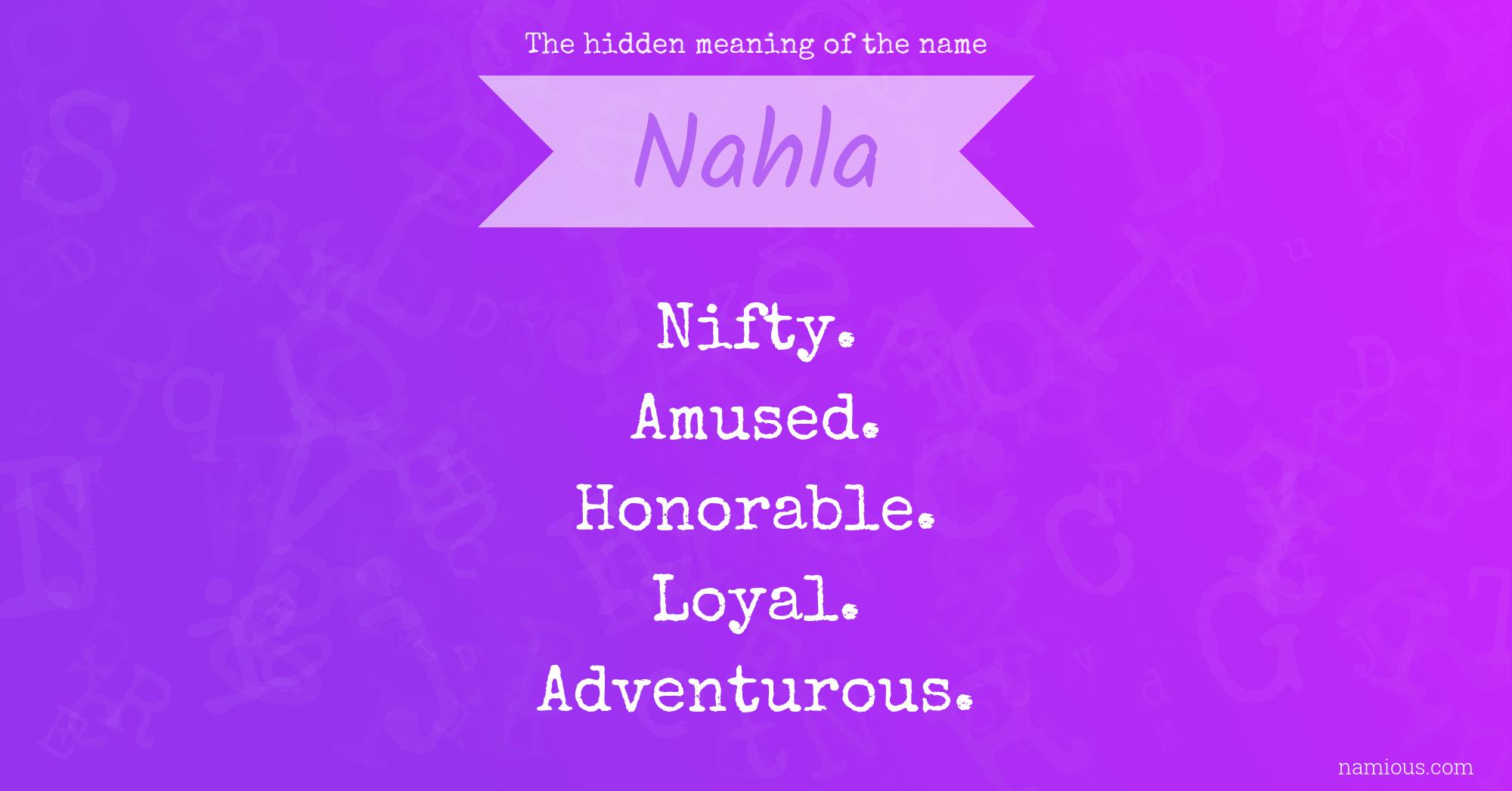 "Nahla is a nifty, amused, honorable, loyal and adventurous person."