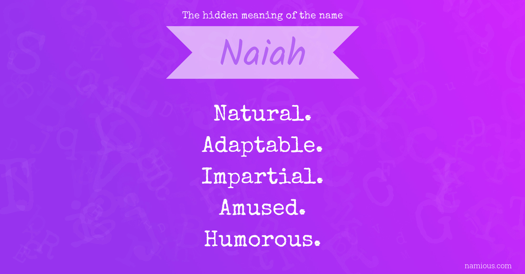 "Naiah is a natural, adaptable, impartial, amused and humorous person."