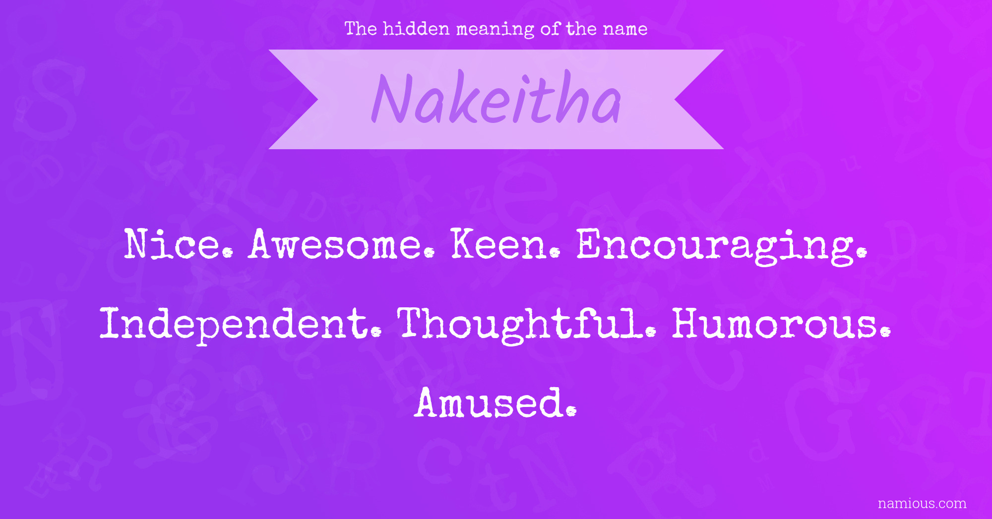 "Nakeitha is a nice, awesome, keen, encouraging, independent, thoughtful, humorous and amused person."