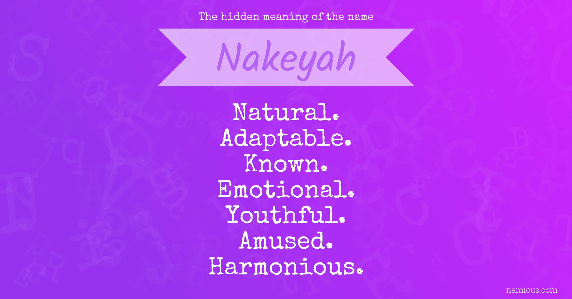 "Nakeyah is a natural, adaptable, known, emotional, youthful, amused and harmonious person."