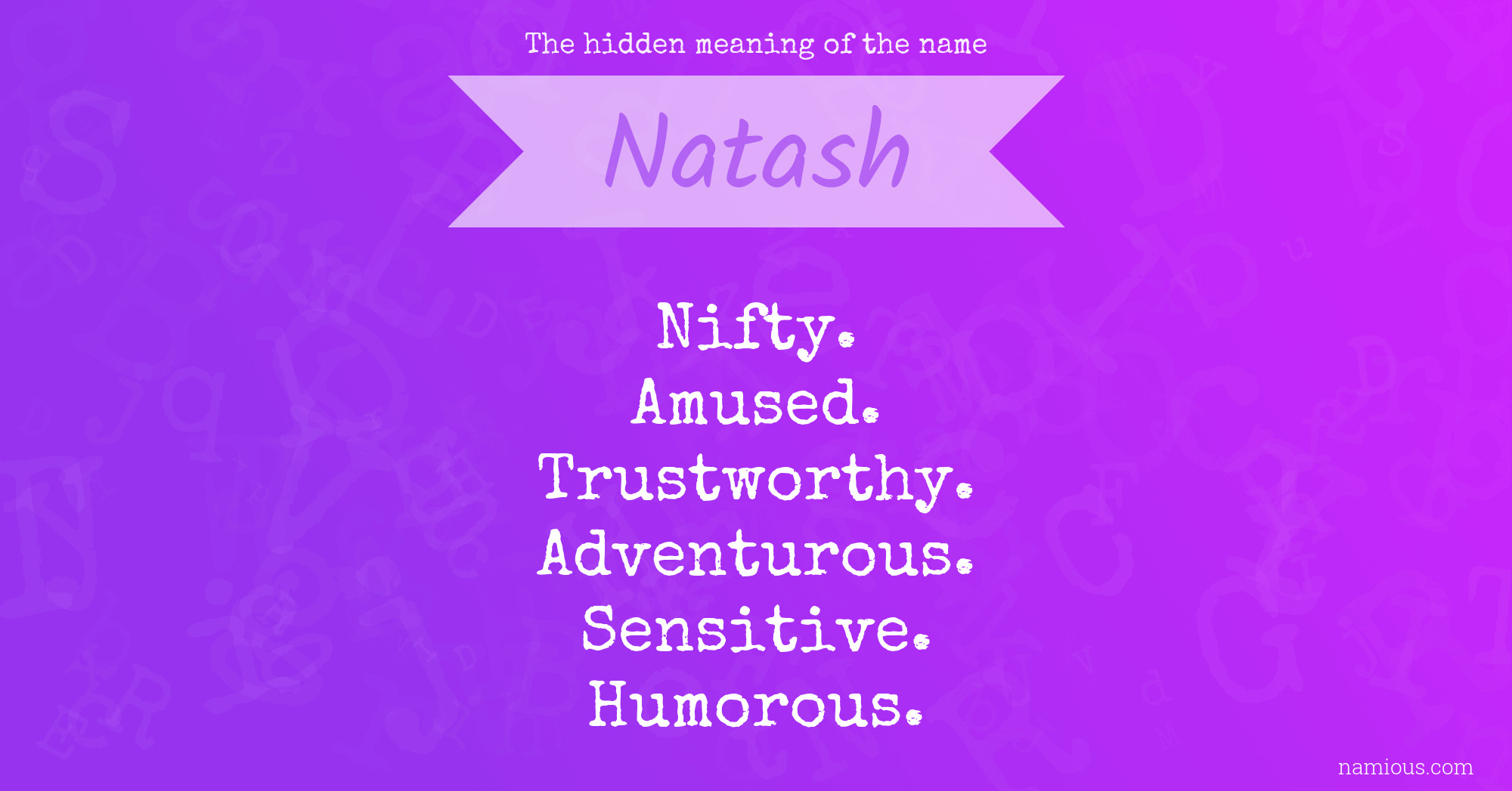 "Natash is a nifty, amused, trustworthy, adventurous, sensitive and humorous person."