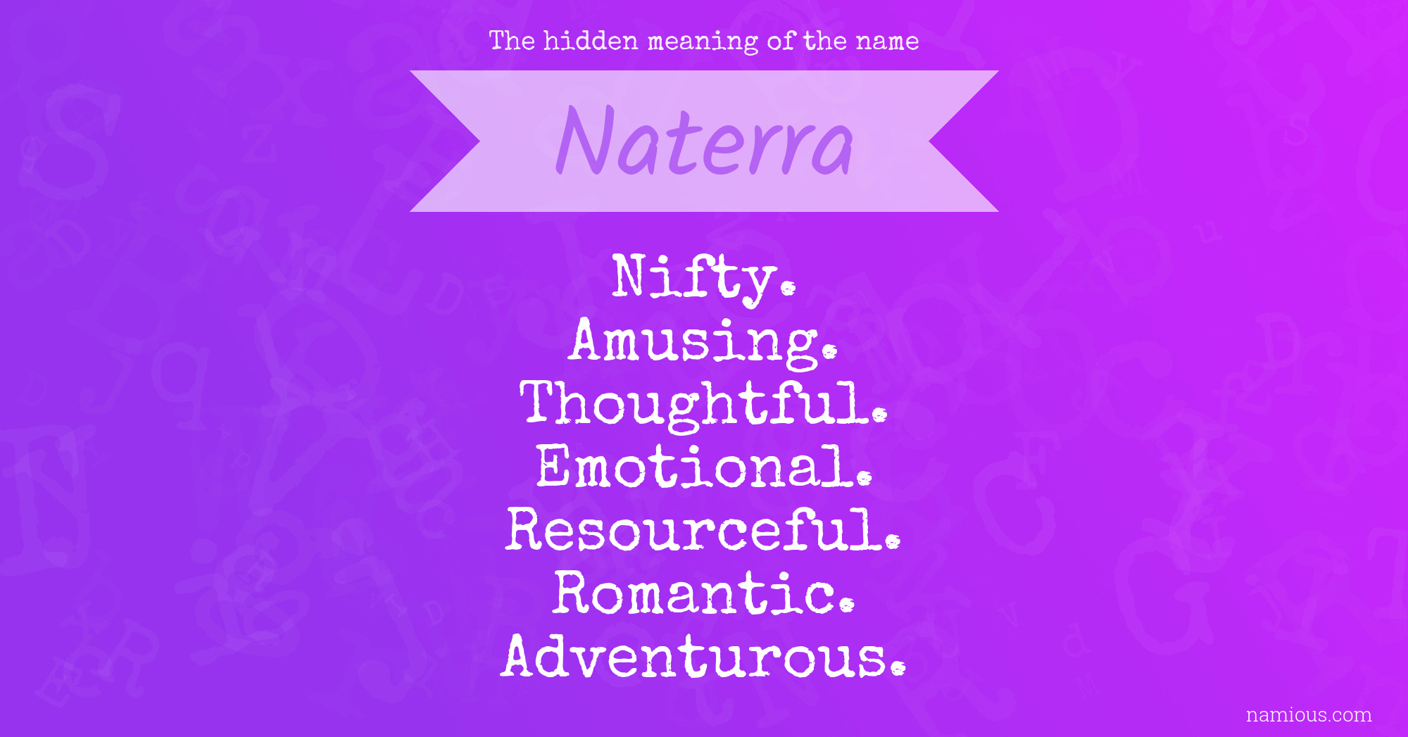 "Naterra is a nifty, amusing, thoughtful, emotional, resourceful, romantic and adventurous person."