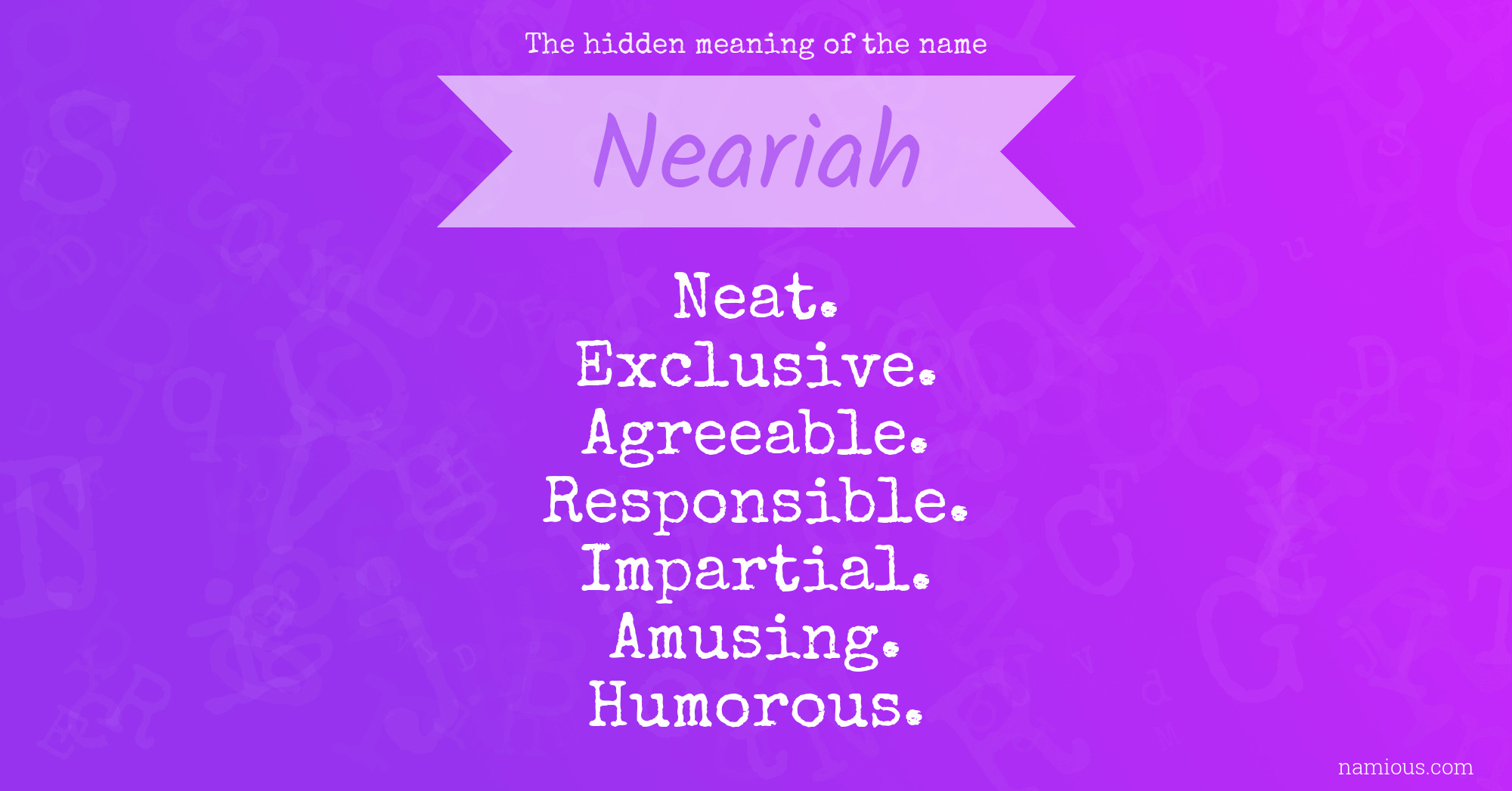 "Neariah is a neat, exclusive, agreeable, responsible, impartial, amusing and humorous person."