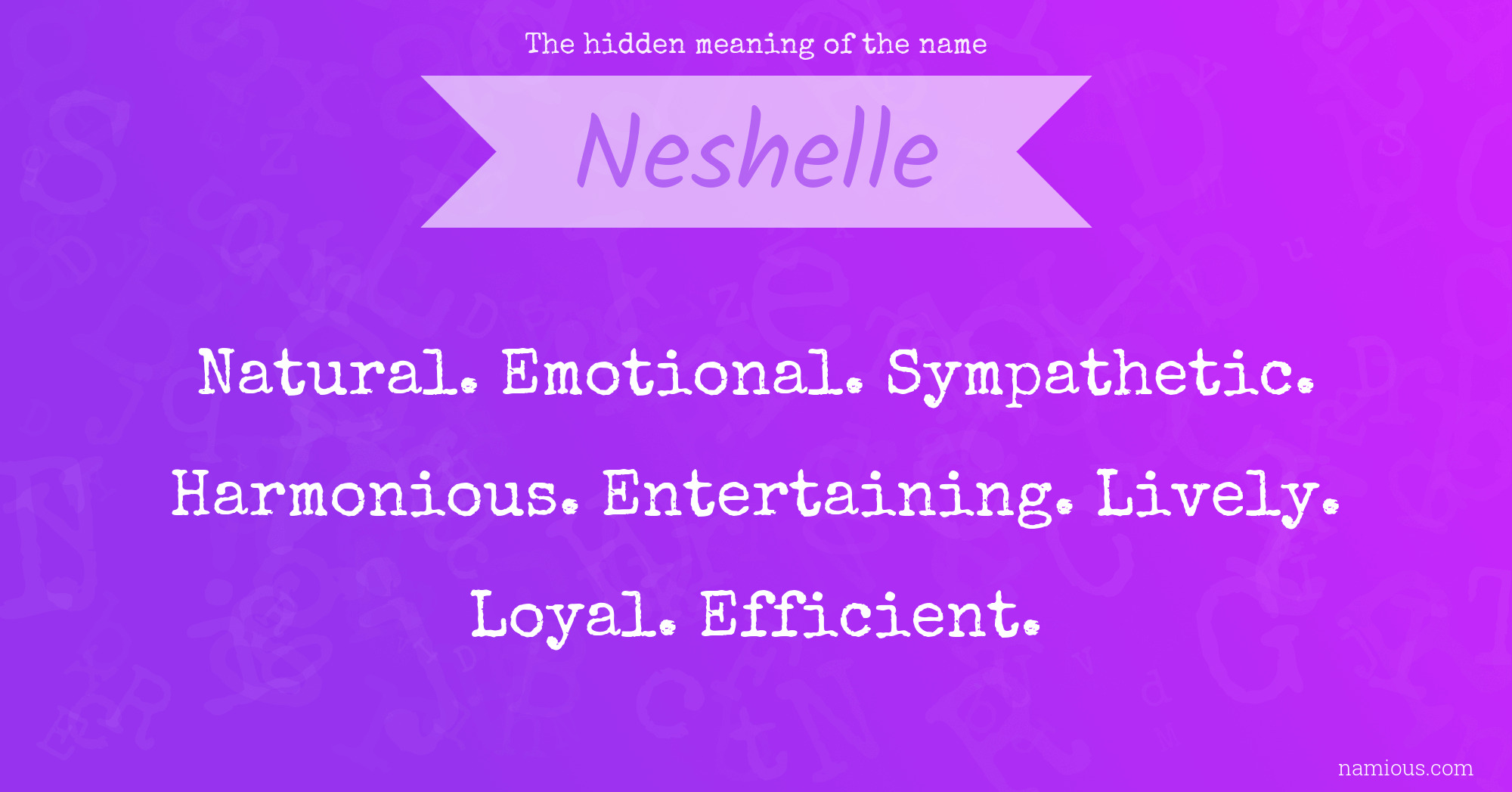 "Neshelle is a natural, emotional, sympathetic, harmonious, entertaining, lively, loyal and efficient person."