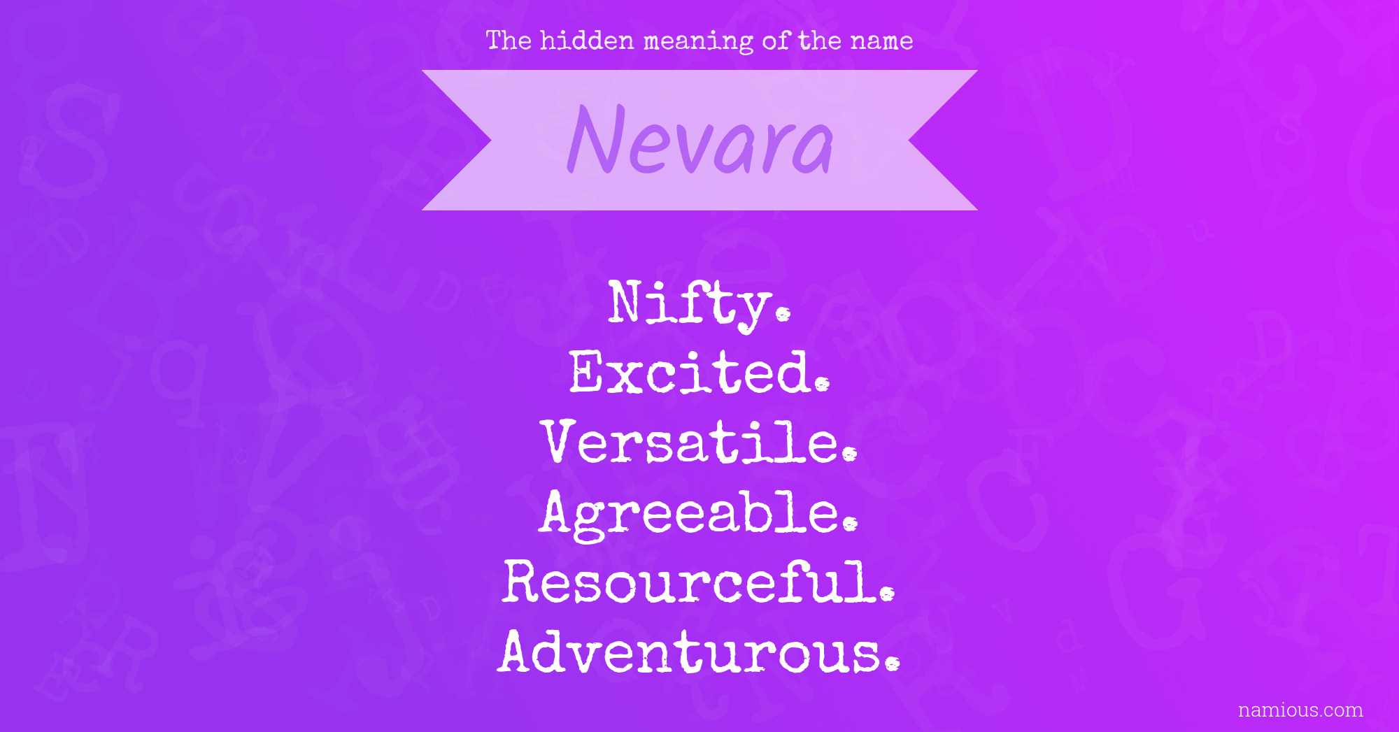 "Nevara is a nifty, excited, versatile, agreeable, resourceful and adventurous person."
