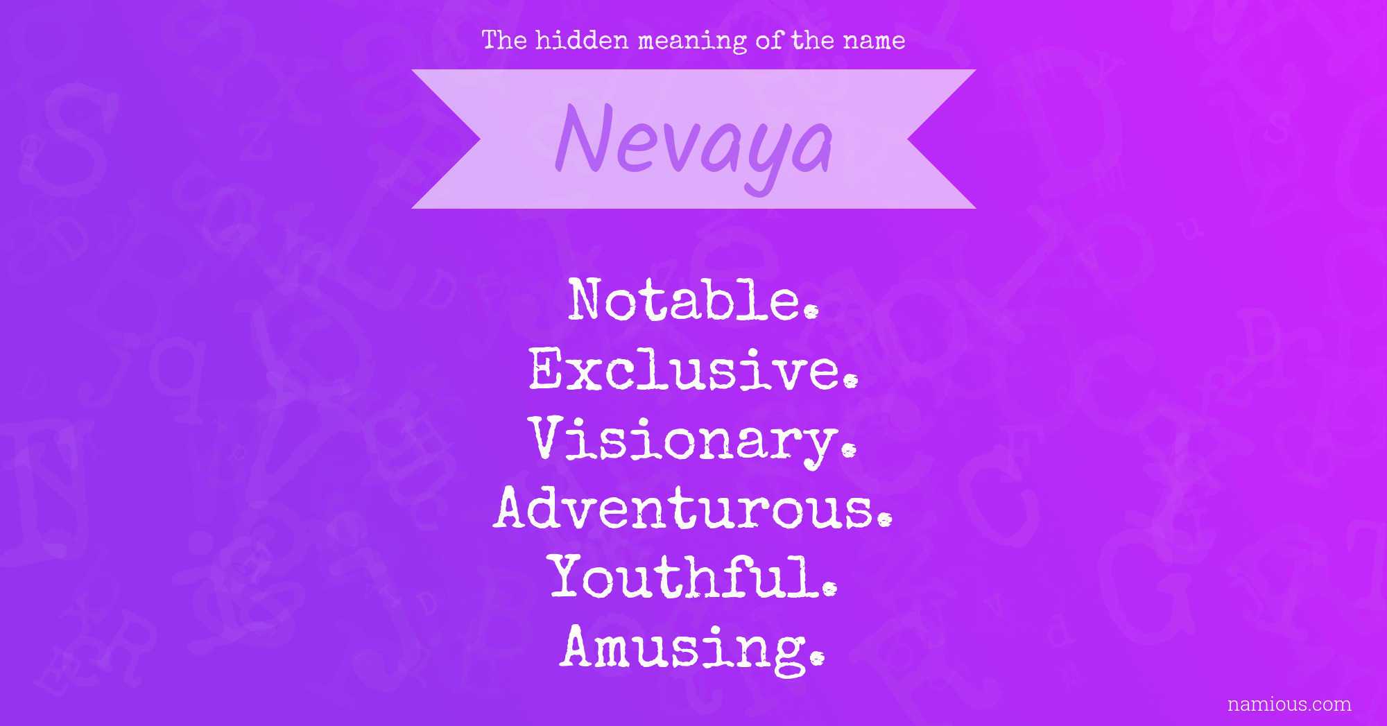 "Nevaya is a notable, exclusive, visionary, adventurous, youthful and amusing person."