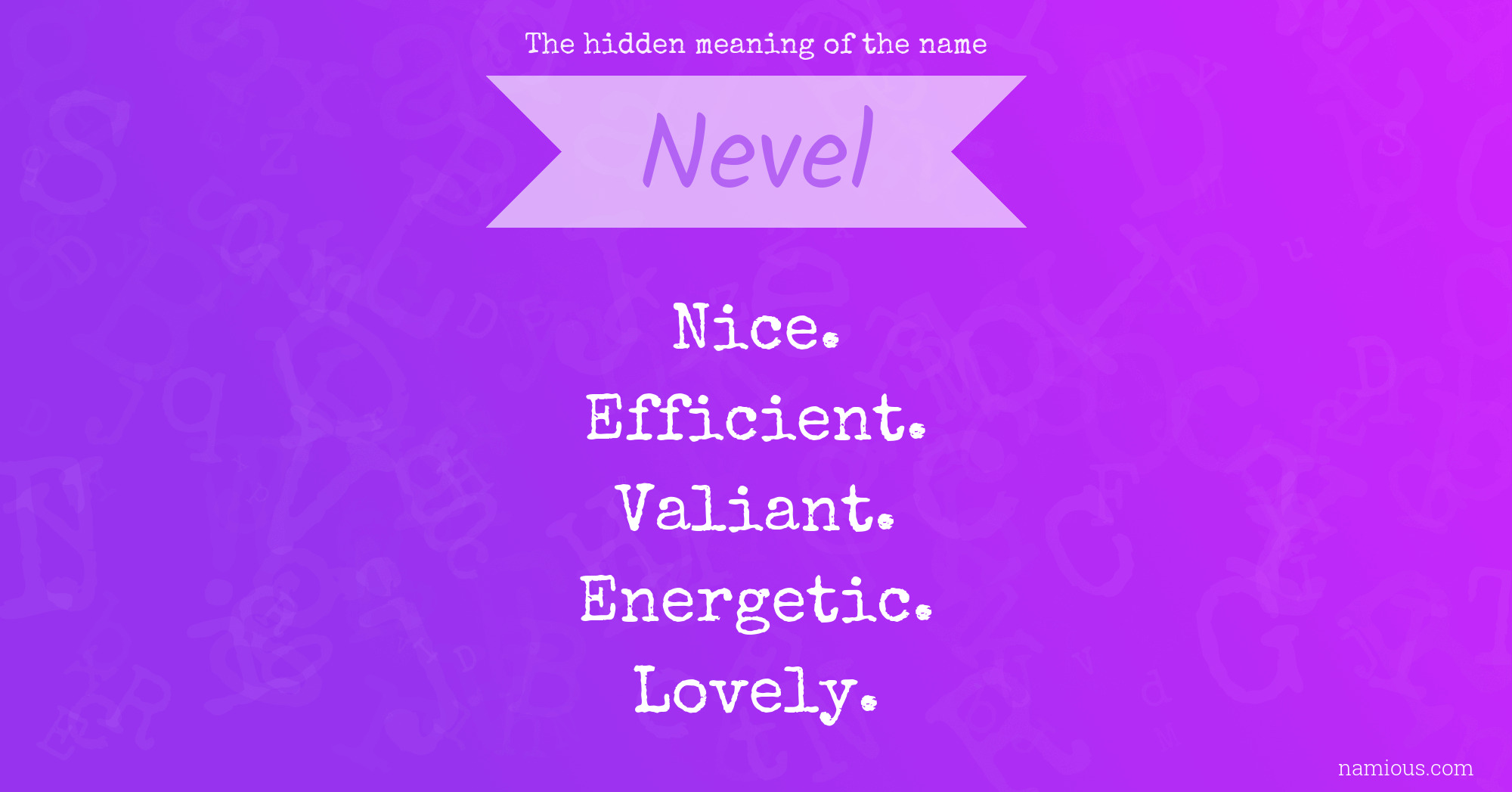 "Nevel is a nice, efficient, valiant, energetic and lovely person."