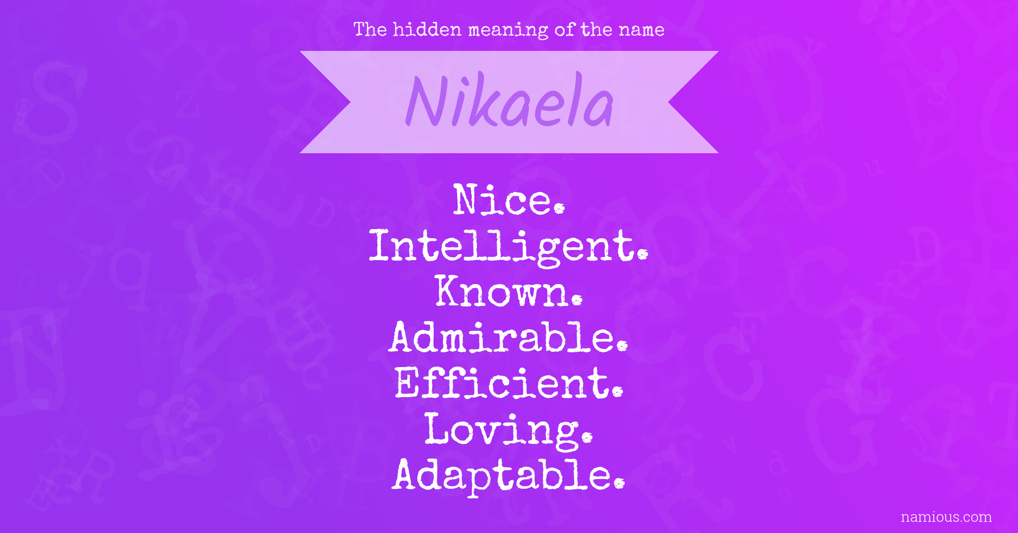 "Nikaela is a nice, intelligent, known, admirable, efficient, loving and adaptable person."